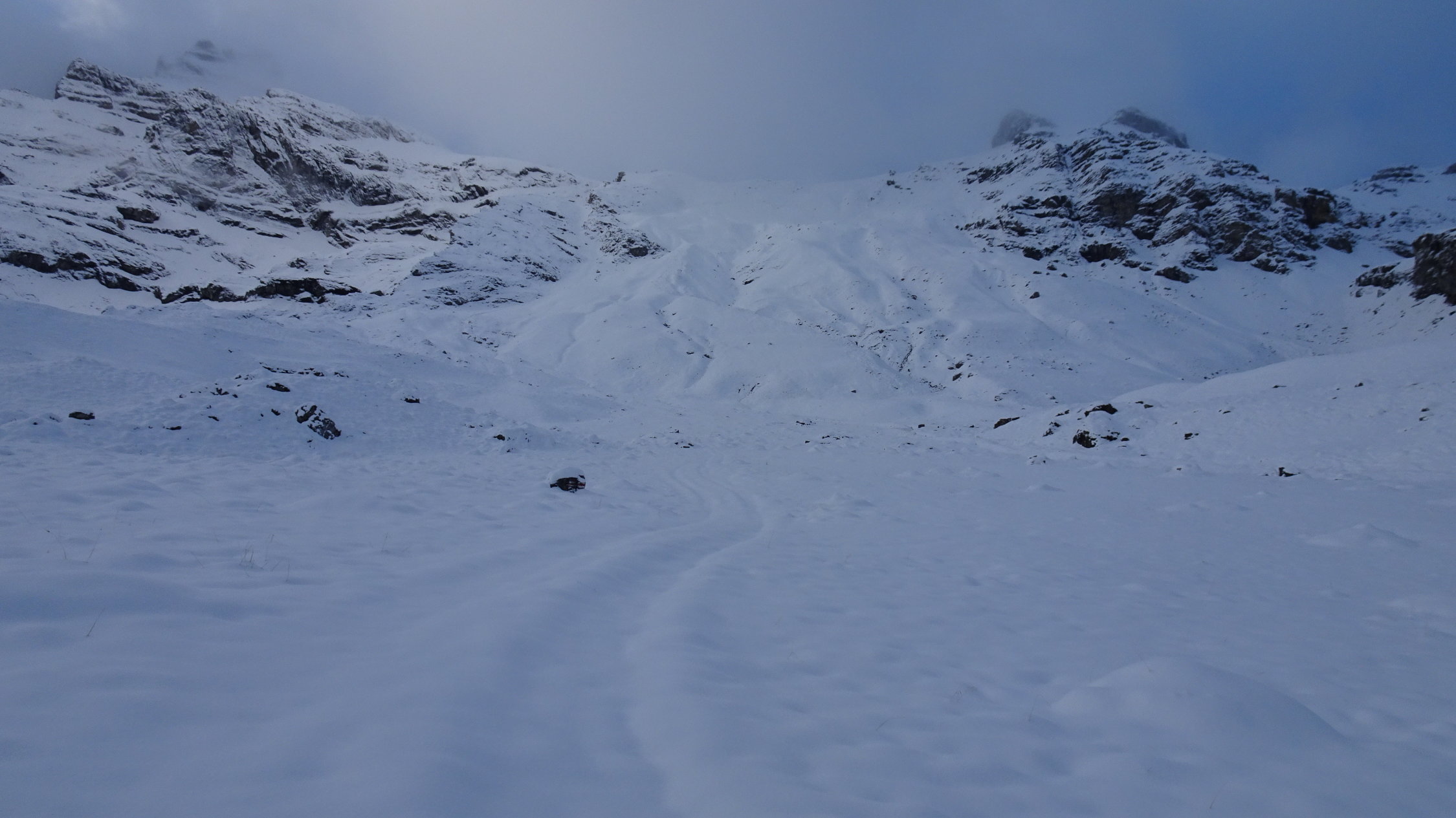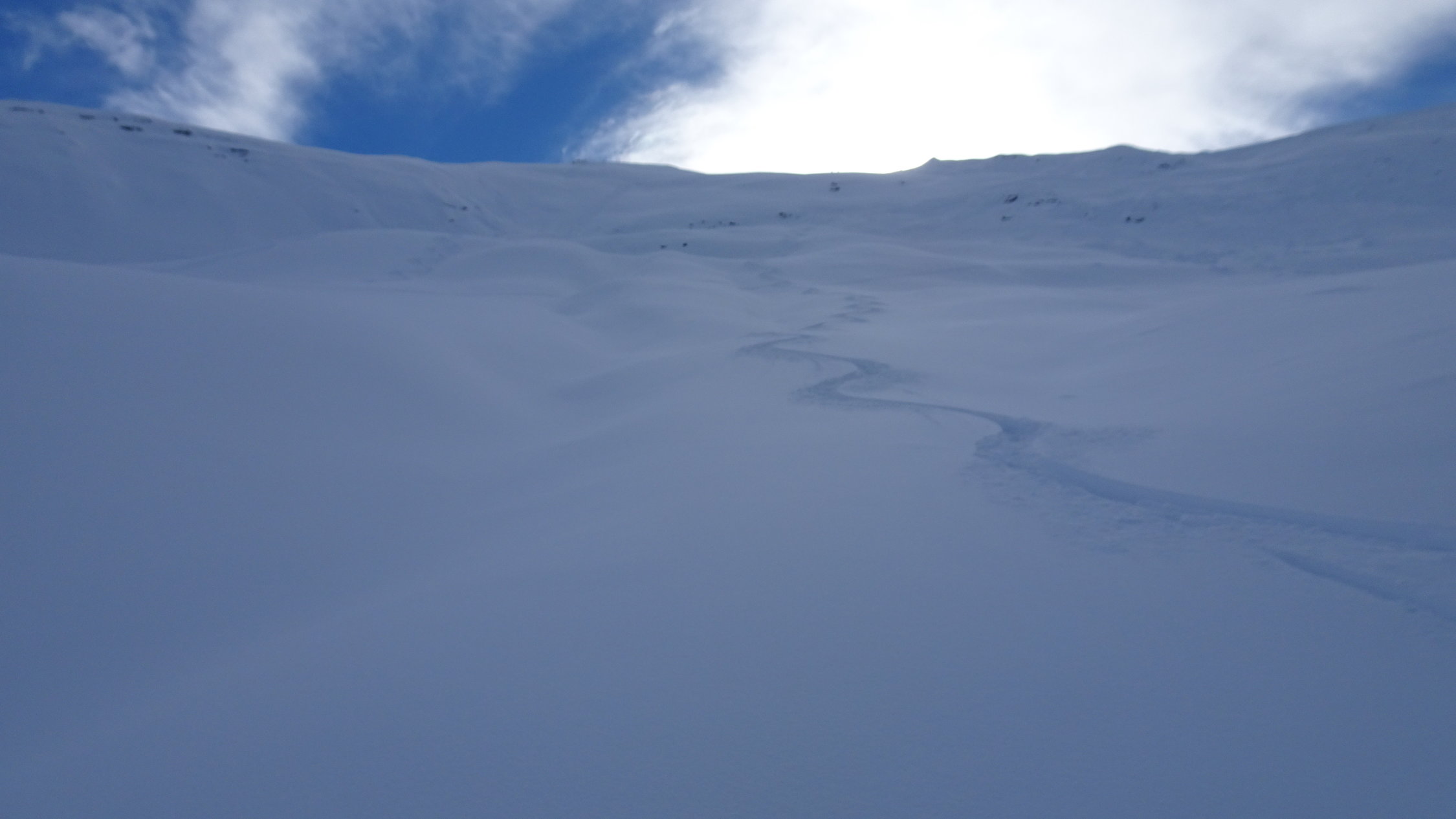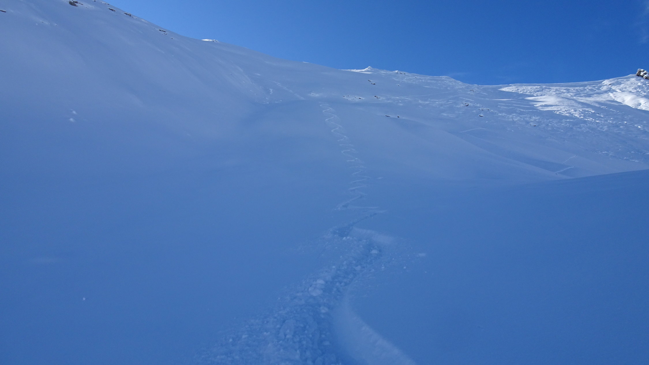 Oberhalb 2100m bis Gipfel 20-40cm mit einer harten Unterlage Ausgezeichnet und bei guter Routenwahl ohne Steinkontakt.