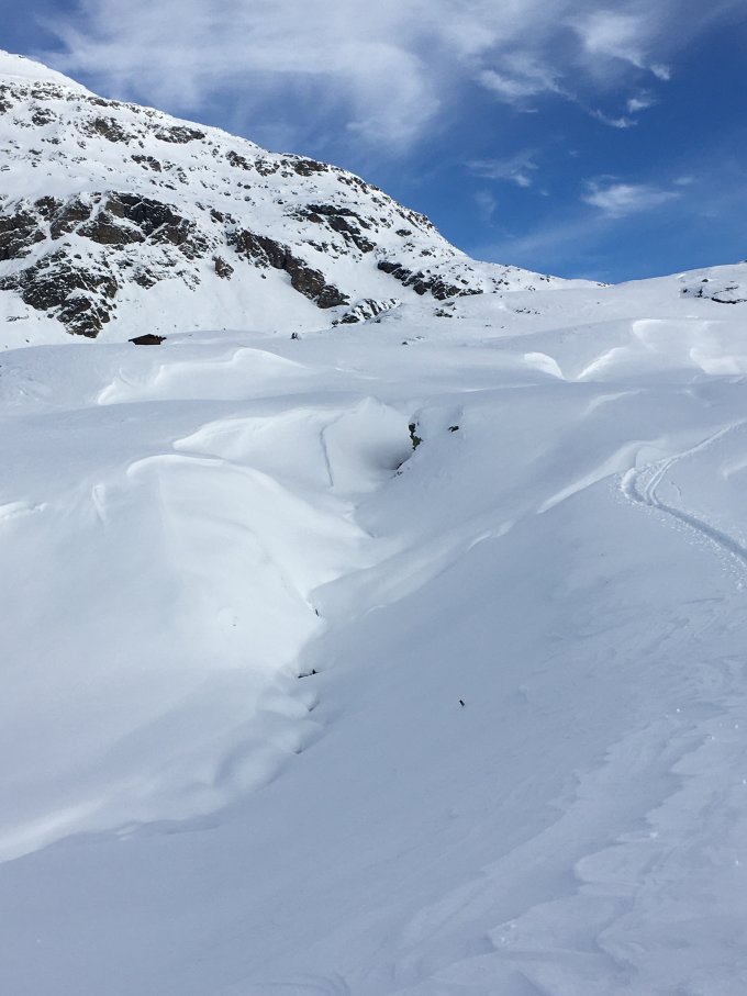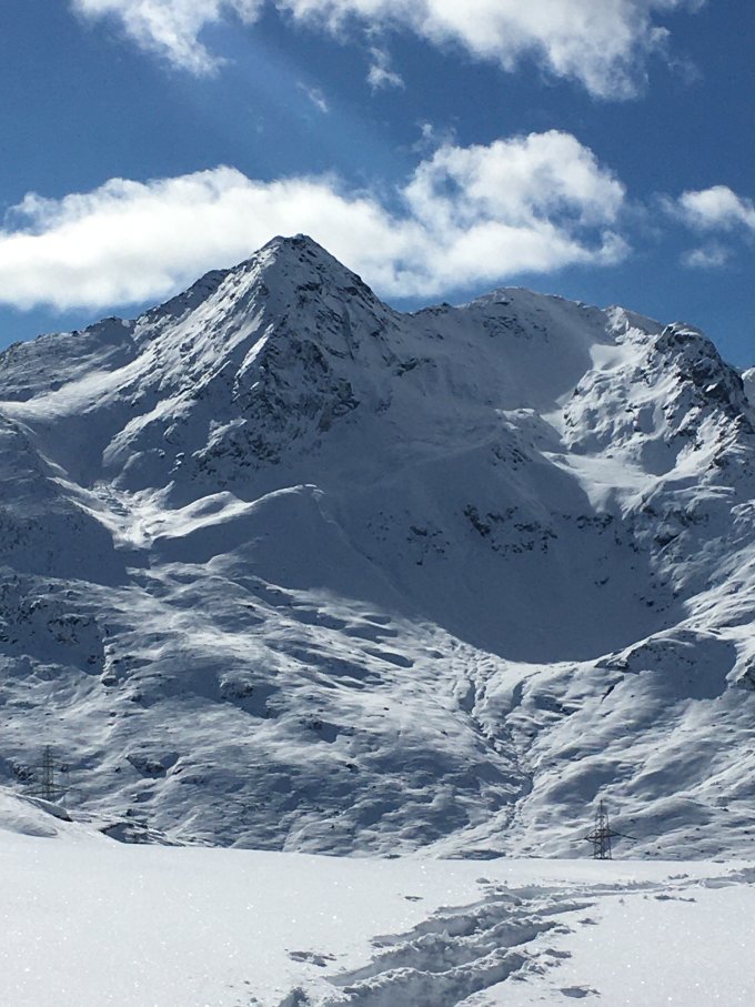 Start um 9 Uhr, minus 3 Grad, windstill. Parkplatz Kurve Val Bügliet war noch nicht geräumt, darum Start Parkplatz Hotel Bernina Ospizio 2307 m. War überrascht, dass Schneeschuhspur bis Wetterstation P. 2456 vorhanden war. Die Schneeschuhläufer sind teilweise stark eingesunken, Schneehöhe ca. 80 cm. Bis Gipfel etwa auf Höhe 2650 m in Flanke Piz Lagalb Skispur vom Vortag vorhanden. Abfahrt bis Kurve Berninastrasse Val Bügliet. Pulverschnee, etwas feucht, nicht ganz perfekt, aber sehr schön zum abfahren.