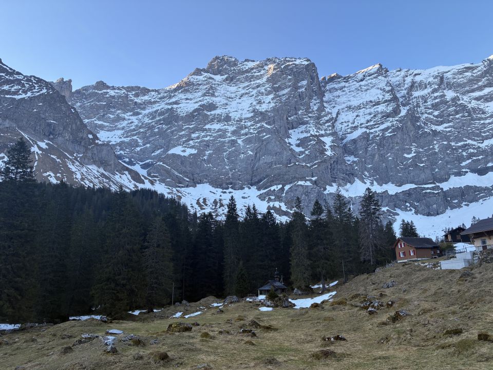 Aber gut, ich hab dort auch nicht übernachtet, was man auch ganz bestimmt nicht tut. Völlig abwegig auf so einer grossen (ebenen…) Fläche…Wandern bis Brunni ist auch schön, anschliessend dürfen dann die Ski vom daypack.