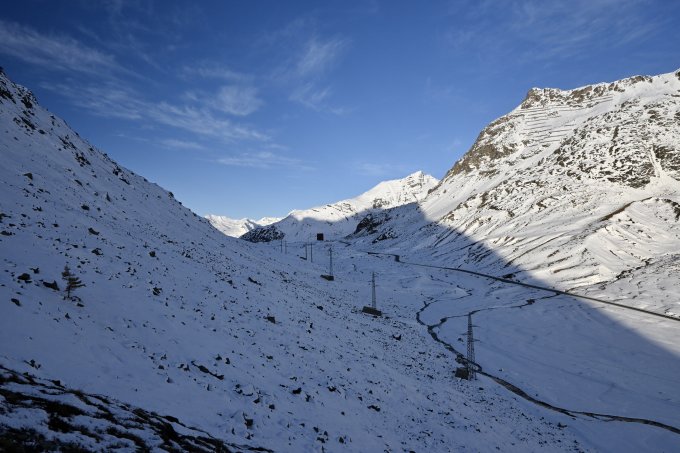 Unten bis zur Engstelle erwartungsgemäss noch wenig Schnee aber genug für den Aufstieg und gerade so knapp ausreichend für eine sehr vorsichtige Abfahrt. Oberhalb der Engstelle dann besser, aber auch noch da und dort Steinkontakt wahrscheinlich. Der Schnee teilweise gedeckelt, teilweise ca. 15-20cm Pulverschnee, insbesondere am Gletscher bereits gut zu fahren.