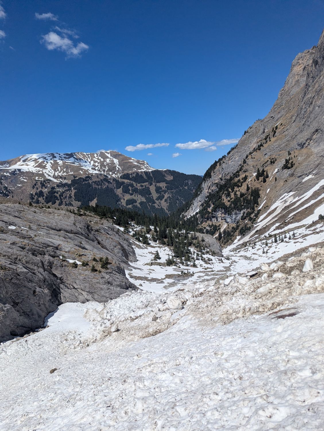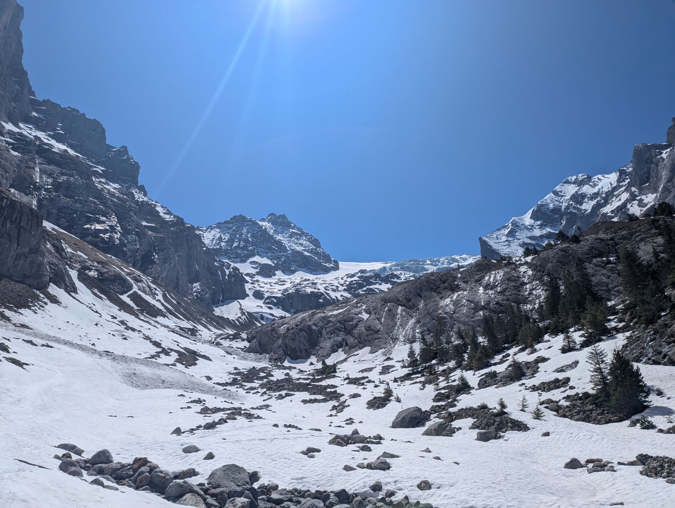 Ab PP Rosenlaui etwa 40 Minuten Portage, anschliessend einige teils grosse Lawinenabgänge queren. In einem der letzten Beiträge wurde von dem linken Couloir abgeraten und die Variante daneben empfohlen. Habe ich ausprobiert und würde ich nicht nochmal so machen, oben komplett Blankeis und erstmal stufen schlagen, während die links bereits weiterlaufen.
