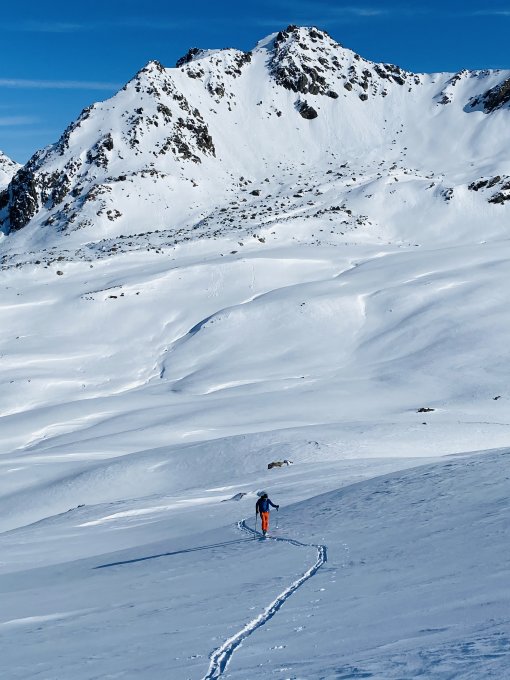 Von gut zu reden ist übertrieben, genügend Schnee für Aufstieg. Oberhalb 2300m gut und Steine mehr oder weniger zugeschneit. Grössere blöcke halt nicht und können gut umfahren werden. Unterhalb 2000m empfiehlt es sich auf der verschneiten Strasse abzufahren .