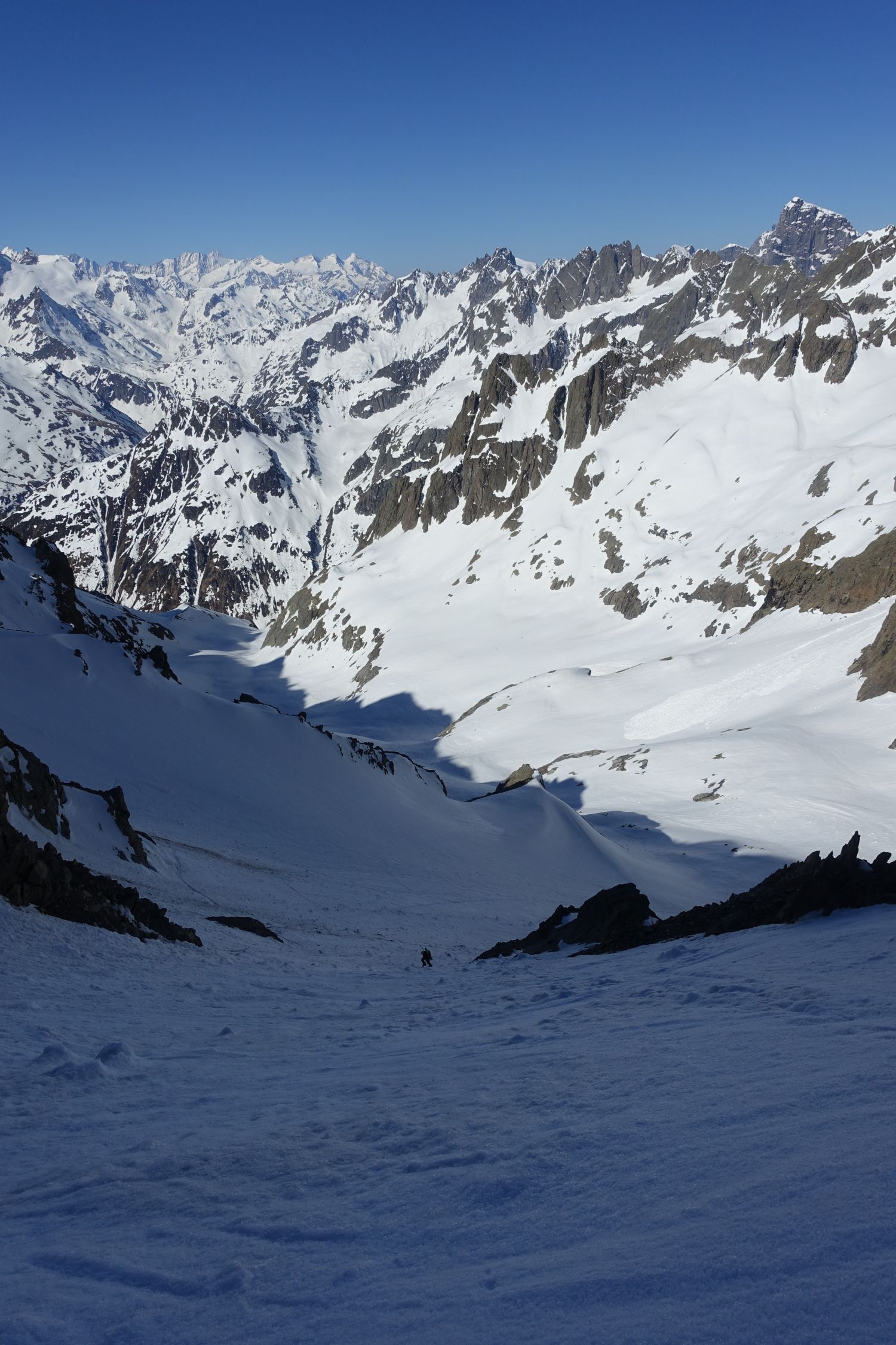 Ab Gorezmettlen die ersten 400m Ski tragen, danach durchgehend noch Schnee. Aufstieg vom Rossfirn in den Sattel mit Steigeisen bei Hartschnee, kein Eis. Ging sehr gut. Abfahrt vom Gipfel 11:20. Gipfelhang sehr feucht, vom Sattel zum Rossfirn hinunter Hartschnee, danach herrlicher Frühlingssulz. Wir waren heute alleine auf diesem Gipfel. Etwas überraschend bei diesem Wetter und herrlichen Bedingungen.