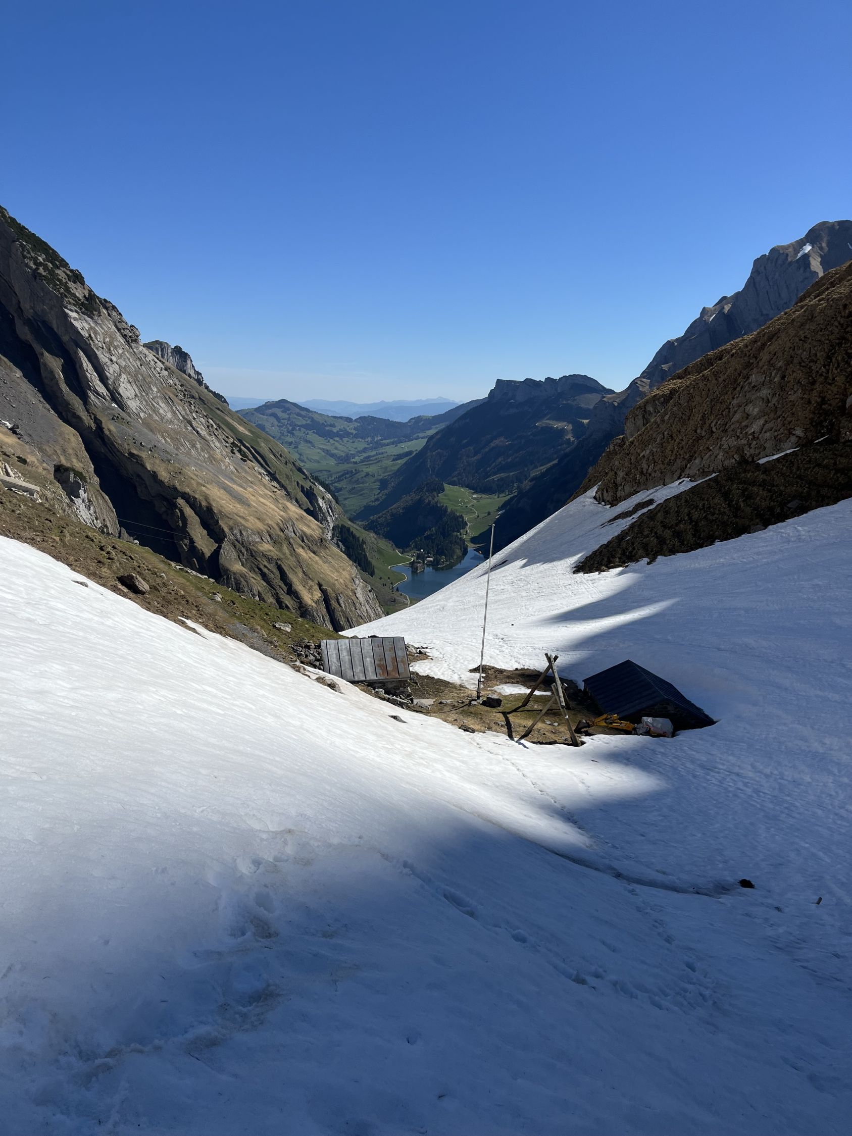 Bis Wagenlücke Sulz, kurze Tragestelle. Schattseitig hart. Alle Kamine noch fahrbar.