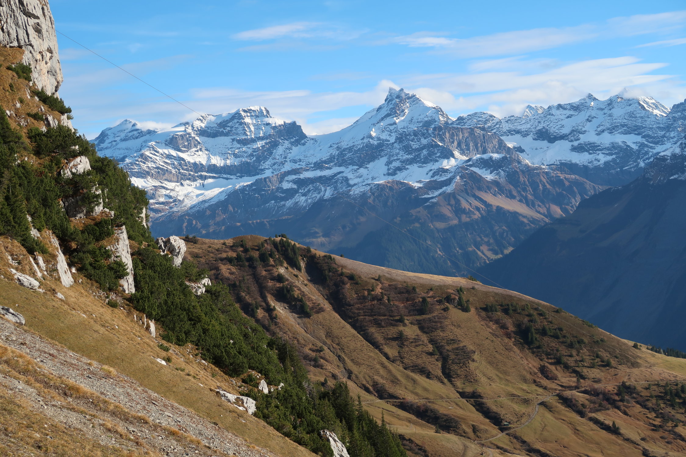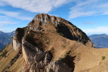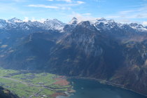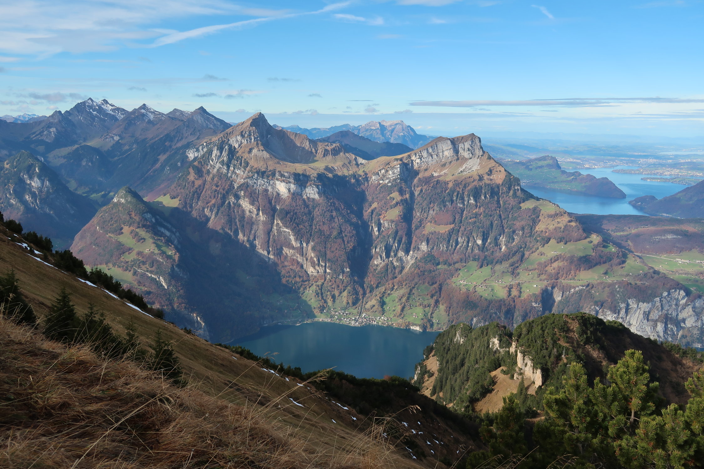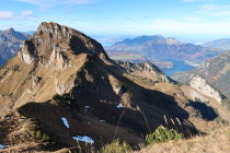 Mit dem 08.00Uhr Bähnli von Brügg nach Ruegig. Dem Wanderweg entlang zur Schön Chulm hinauf, dann via Firtiggrätli den Diepen umrundet. Auf dem teilweise ausgesetzten Grat über das Äbneter Stöckli auf den Rophaien. (Schlüsselstellen mit Seilen gesichert) Grandioses Panorama auf den Vierwaldstättersee sowie zur Urner, Schwyzer, Glarner und Nidwaldner Bergwelt. Retour wieder auf dem gleichen Weg zur Schön Chulm von dort ein kurzer Aufstieg zum Siwfass und Hagelstock. Abstieg zur Schön Chulm und auf dem Wanderweg via Alp Zur Gand zur Bergstation Ruegig zurück. Ein Wermutstropfen heute: Die Wege "schattenhalb" waren nass, schmierig und rutschig.