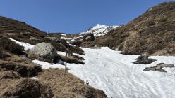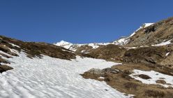 Der weitere Aufstieg im Zickzack wäre lästig gewesen, weil man ohne Harscheisen (Bergrider-Codex) ständig ausgerutscht wäre. So entschied ich mich an meiner geraden Linie gestzuhalten.
