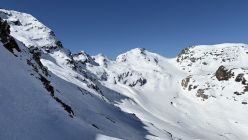 Unter dem Fanellgletscher auf ca. 2600 montierte ich die Felle und startete brav im Eco-Modus, da mich Marcel Worte „es zieht sich“ zum Kräftesparen mahnten.