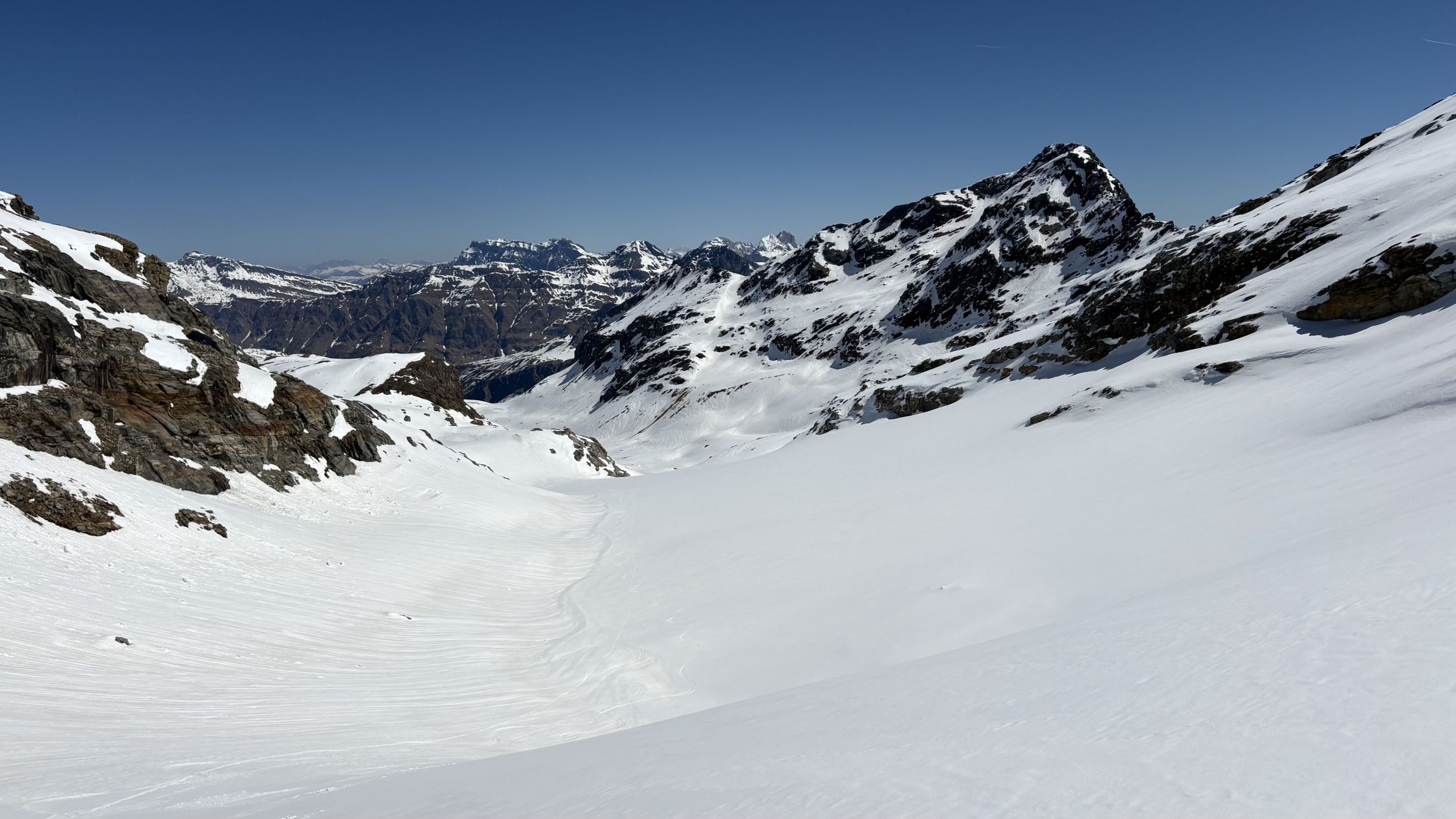 Die Abfahrt war oben wie vermutlich gestern Knusperpulver und nach der Chilchalplücke zum Teil pickelhart, je nach Mikro-Exposition.