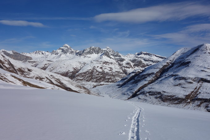 Insgesamt oben sicherlich schon genug Schnee, ab 2000m wirds Mau. Dafür hat man derzeit sichere Verhältnisse, was bei den steilen Hängen auch etwas wert ist.