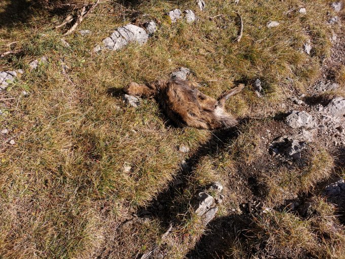 Auf ca. 1600m liegt ein Tierkadaver auf dem Weg.