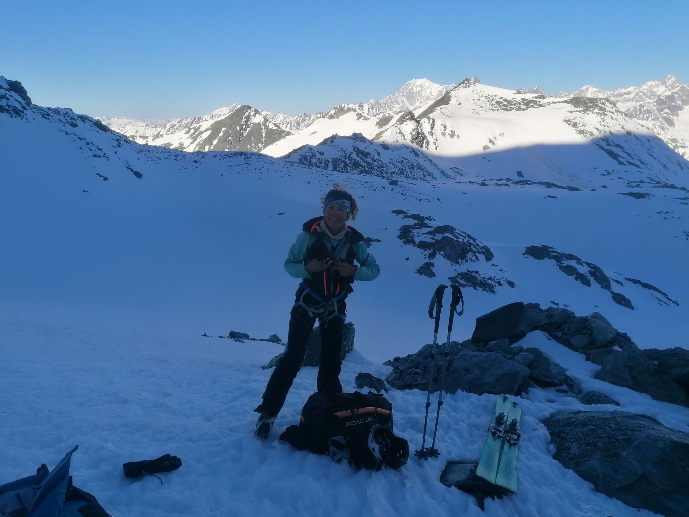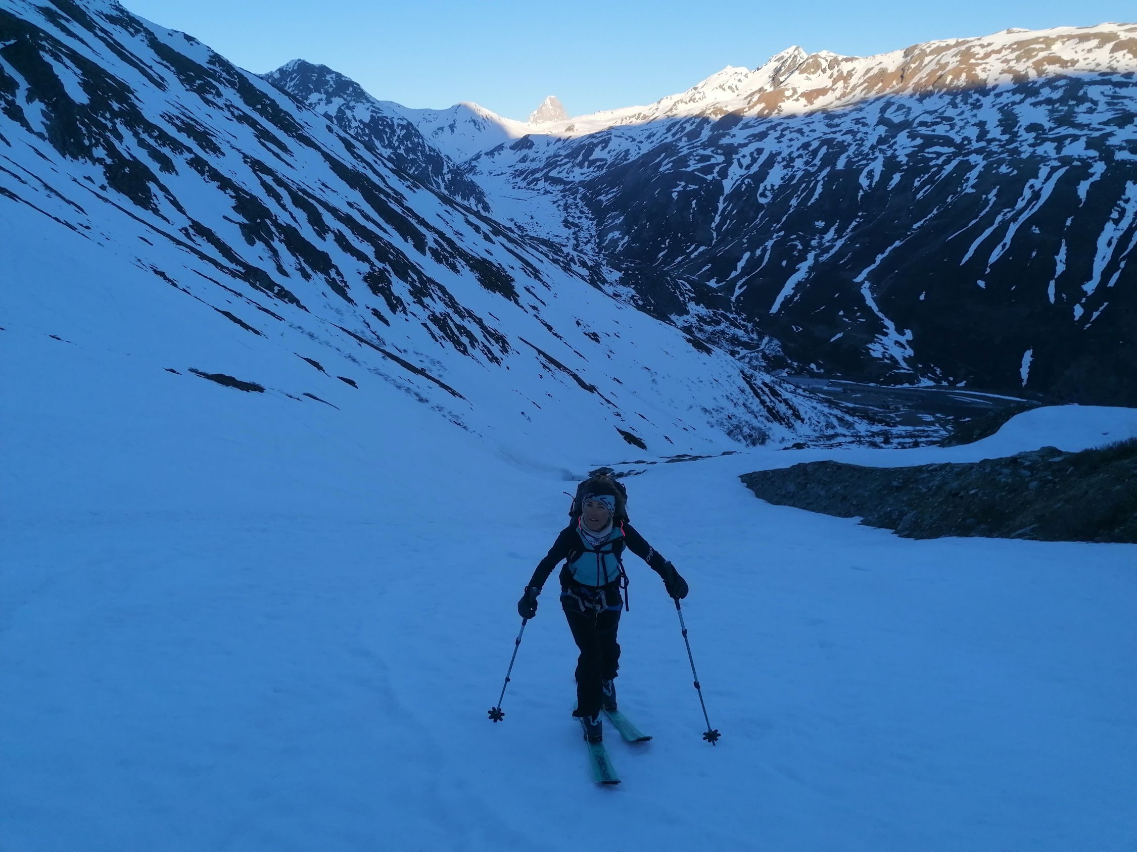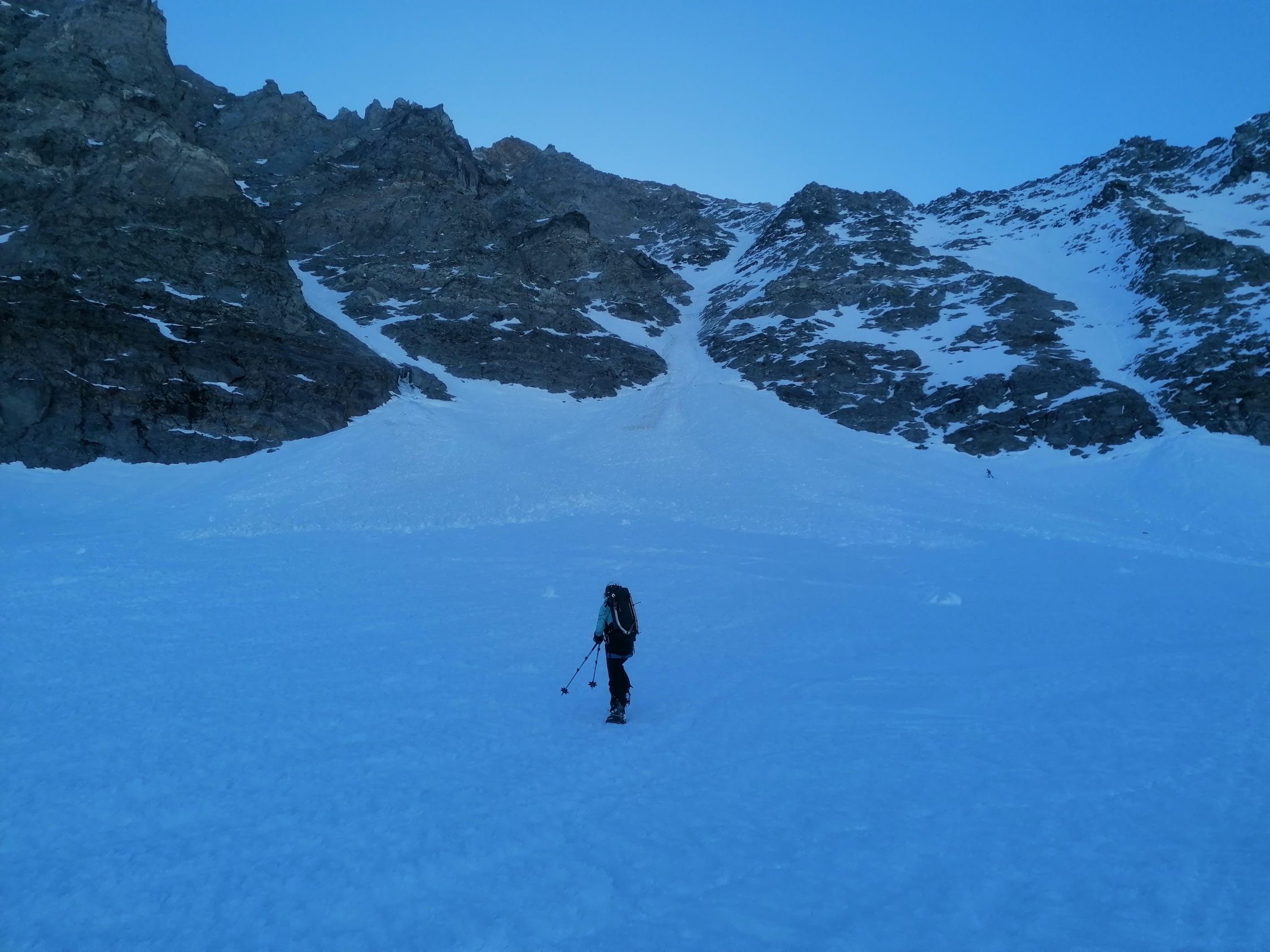 Ich gratuliere meiner Partnerin Nicole zur Solo Besteigung vom Hannibal Couloir auf den Mont Velan.