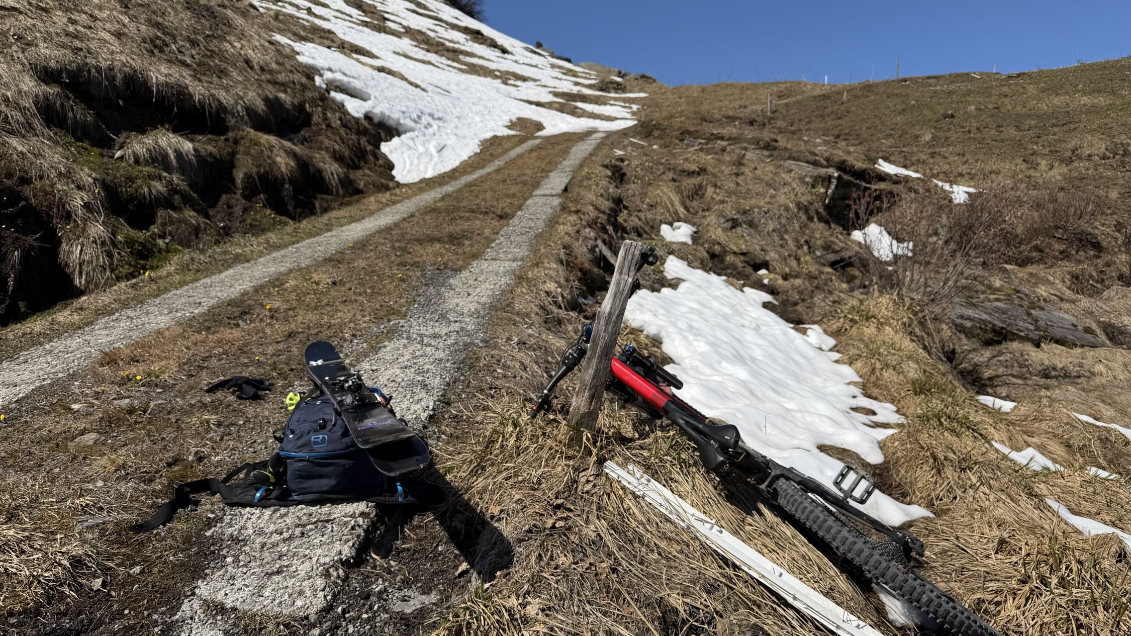 Super Verhältnisse von unten bis oben bis unten. Bin mit Auto bis Geren (25CHF…), mit Bike bis unter die Hütten bei Pt 1729, dann durchgängig Schnee. Hatte die erst Hälfte Harsteisen dran, wäre aber auch ohne gegangen.