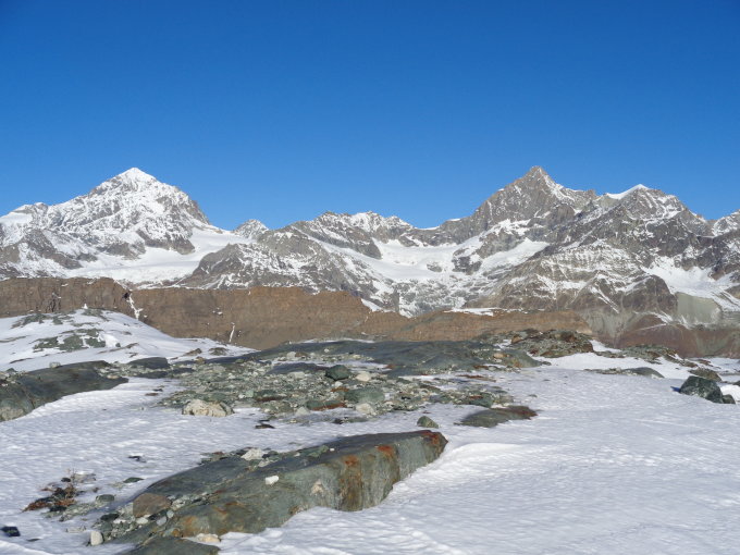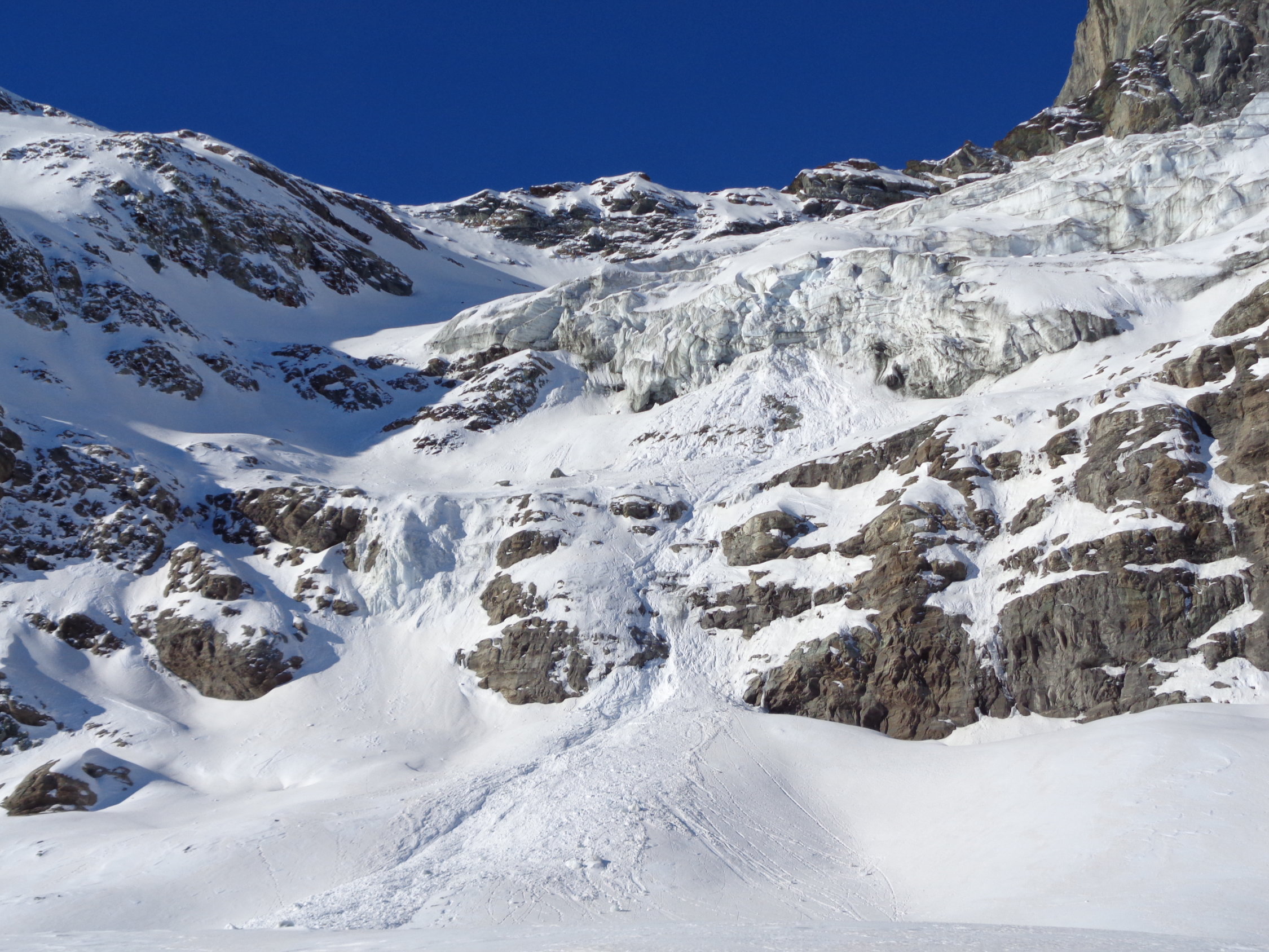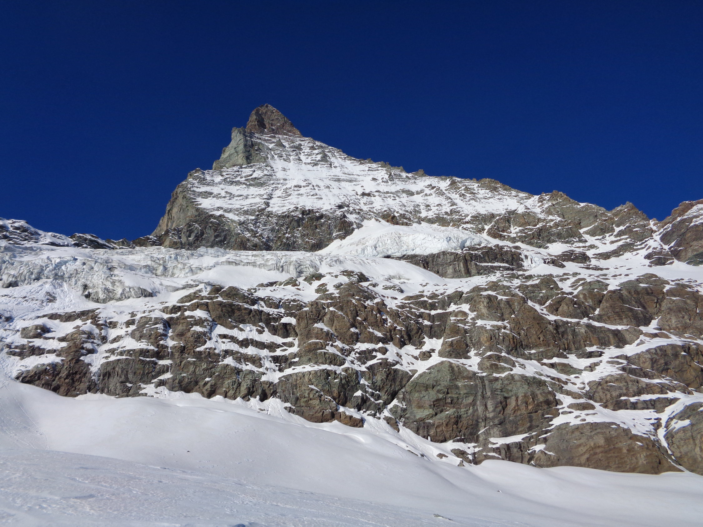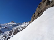 Sehr schönes Couloir am Fusse der Matterhorn-Ostwand. Der Zustieg erfolgte vom Trockenen Steg her. Das Couloir ist 400m lang, und hat eine Neigung von 35 bis 40 Grad.