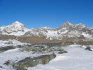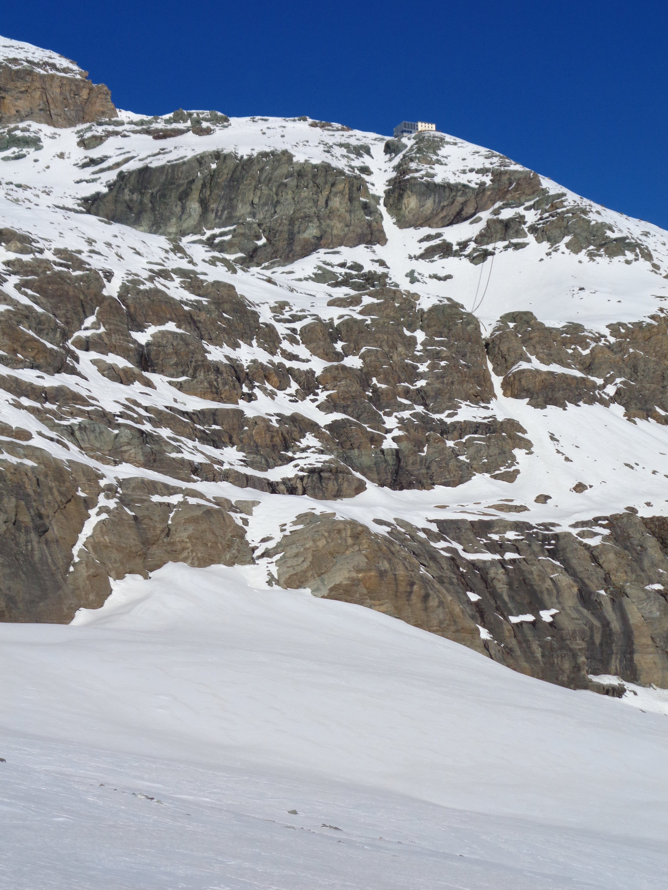 Südost-Couloir Aufstieg: Vom Trockenen Steg - Theodul-Gletschersee - Furggsee - und Abfahrt zum schrägen Couloir - aufs erste Plateau - und bis zur Engstelle wo die brüchigen Felsen den Durchstieg verunmöglichten.