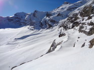 Ausgezeichnet! Diese Einschätzung bezieht sich die Wetter- und Schneeverhältnisse. Diese waren perfekt. Siehe Film. Der Ausstieg aus dem ersten Couloir war durch brüchige Felsen versperrt.