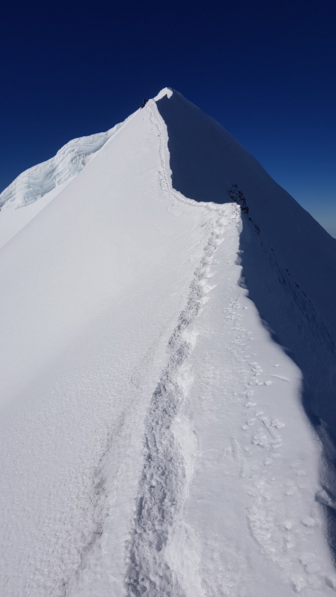 perfekte Verhältnisse, super Trittschnee, trockener Fels, kein Eis