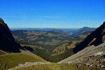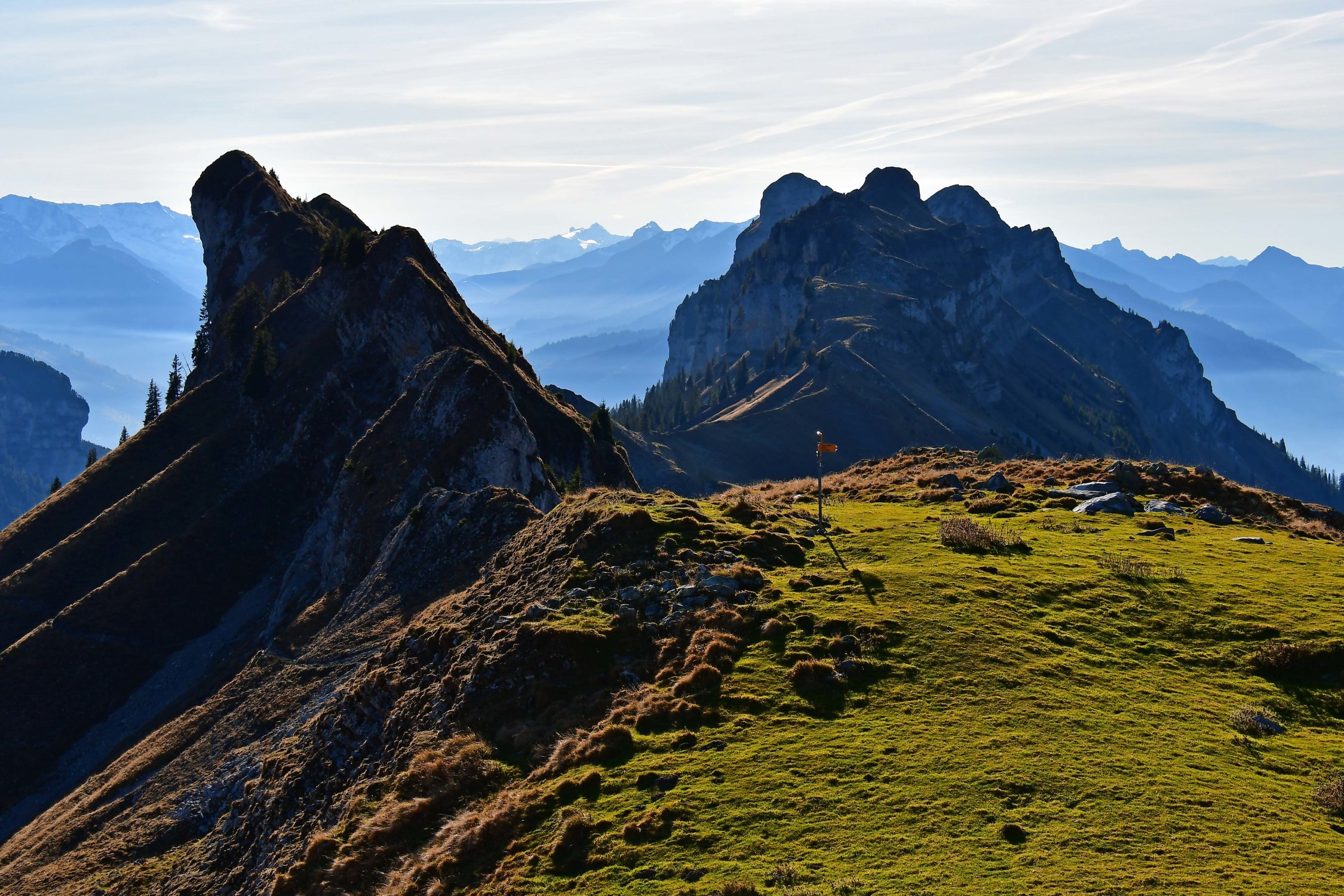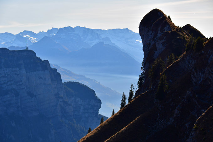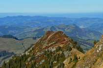 Der Wanderweg zum Burst ist dann vergleichsweise einfach, aber an gewissen Stellen auch ausgesetzt. Ich begegnete unterwegs zwei Wanderer die offenbar von der Westseite aufgestiegen waren und ziemlich verunsichert waren betreffend der Abstieg zur Sichle. Dann der Blick ins Mittelland ohne Einschränkung, welche sich vom Grat zeigt, ist einfach überwältigend!