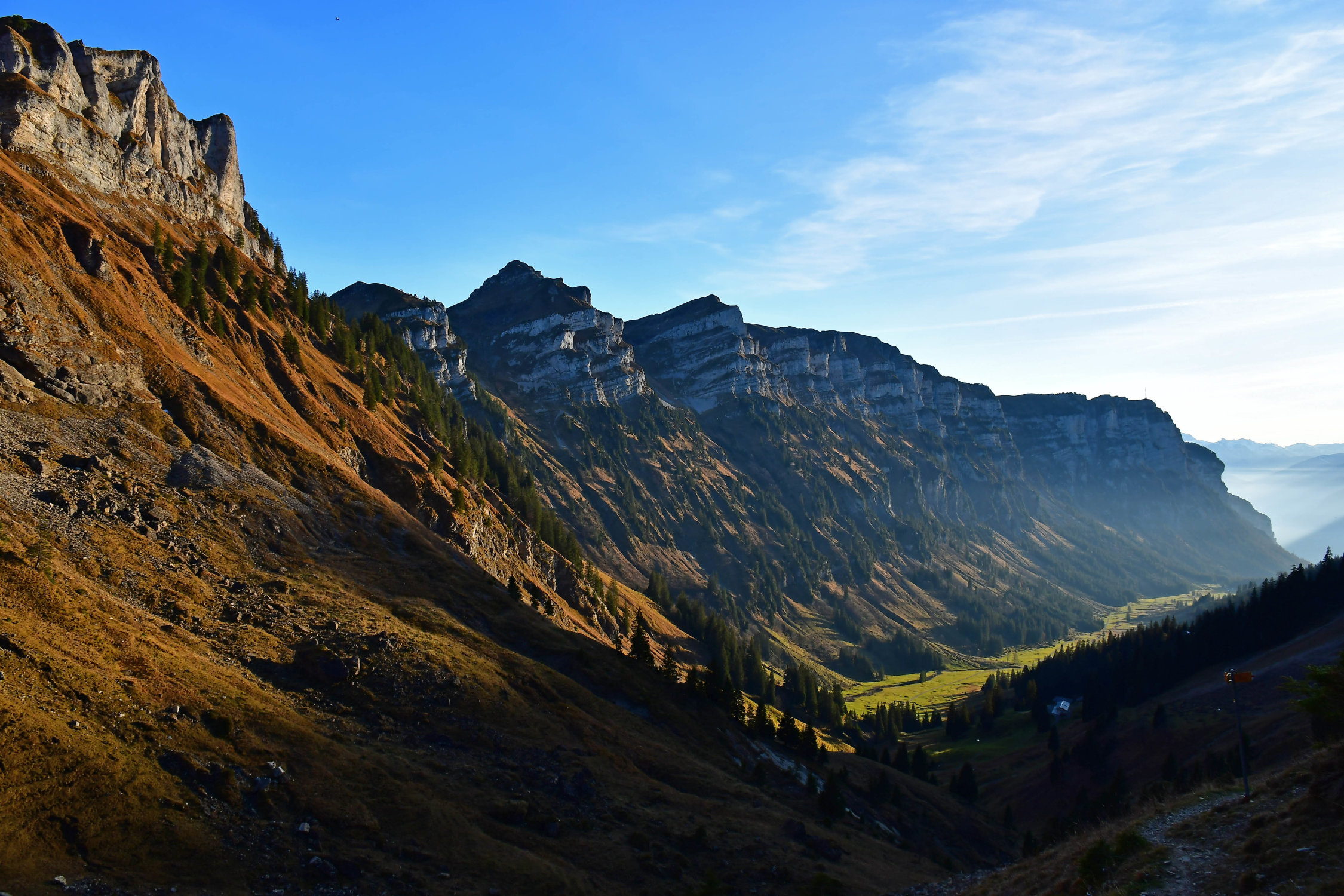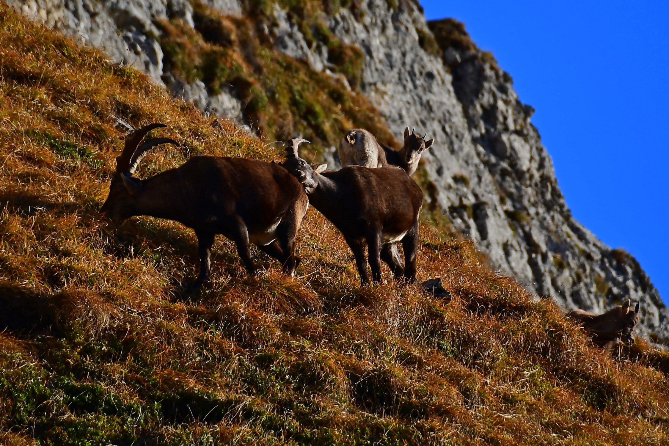 Schnell zurück denn die Tage sind kurz... Am Schibe Quergang kam dann alles anders als geplant... Nichts Dramatisches zum Glück. Ich traf da zwei Klubkameraden, die mich noch auf den Steinböcken oberhalb des Quergangs aufmerksam machten. Natürlich schön, aber unsere Freunde (Steinböcke) trampelten auch einige kleineren Steine. Als meine Klubkameraden mich einluden mit dem Auto ab Hinterberg mitzufahren, sagte ich zu und so kehrte ich um und stieg ab bis Hinterberg. Dadurch konnten meine Knien etwas geschont werden und war ich vor eintretenden Dunkelheit bereits beim Auto in Habkern. Schön, wenn es diese Kameradschaft gibt! Vielen Dank!