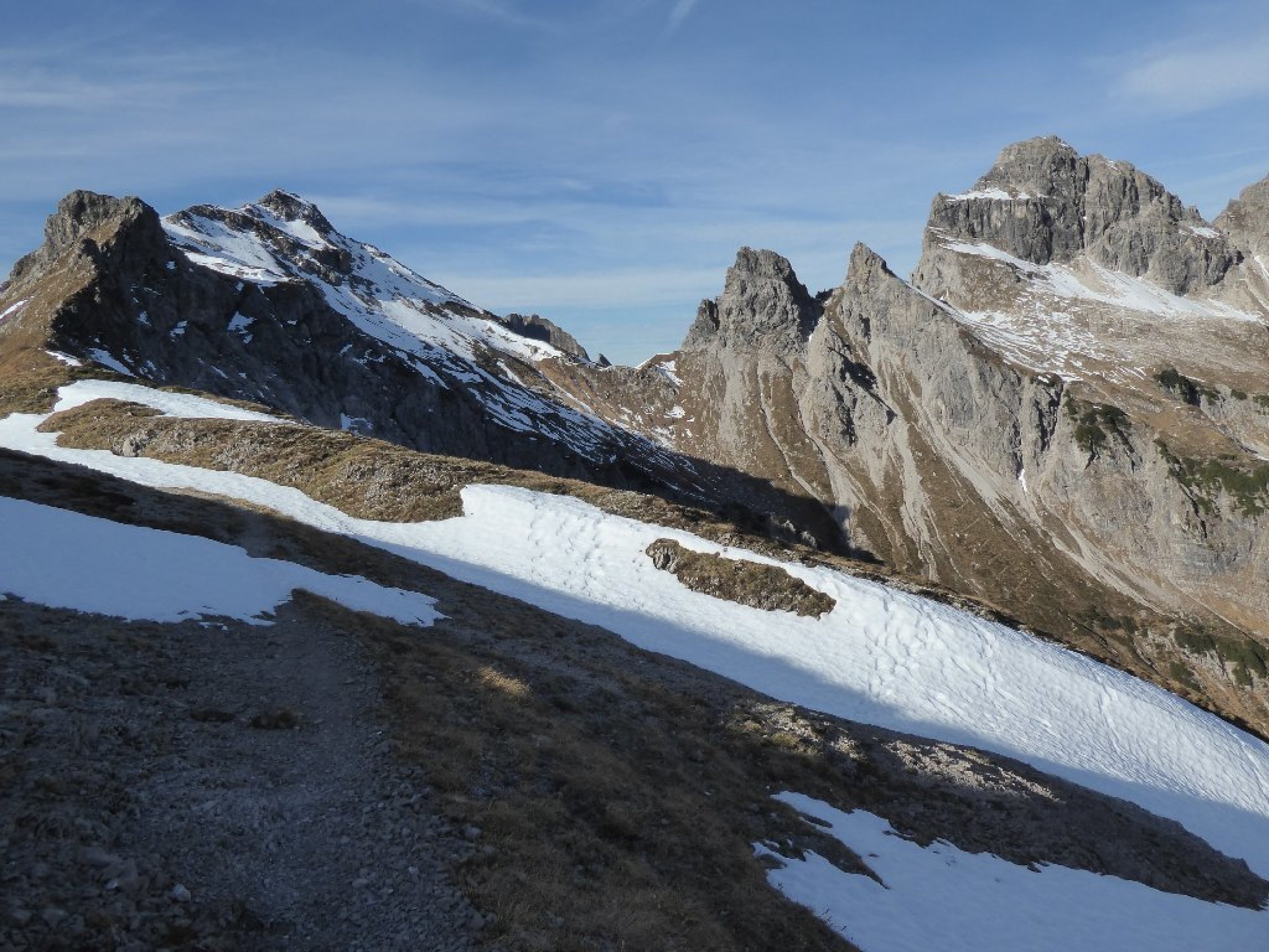 Start 9Uhr bei -1° Strasse hatte noch Reifglätte, später alles gut zu gehen. Weiter oben hatte es div. kurze durchgefrorenen Schneeflecken, war aber kein Problem. Nur den Abstieg über Hornbachjoch machte ich nicht. Weil ohne Grödel oder Steigeisen mir das zu heikel war, also gleicher Weg zurück. Zudem lag das Jochbachtal fast den ganzen Tag im Schatten.