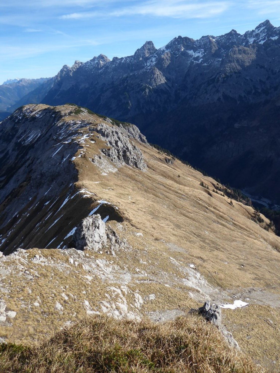 Am Höllhorn S-Grat Seilschaft gesichtet. Bemerkenswert wie die früher ihre Steige in total unübersichlichem Gelände gefunden und angelegt haben.