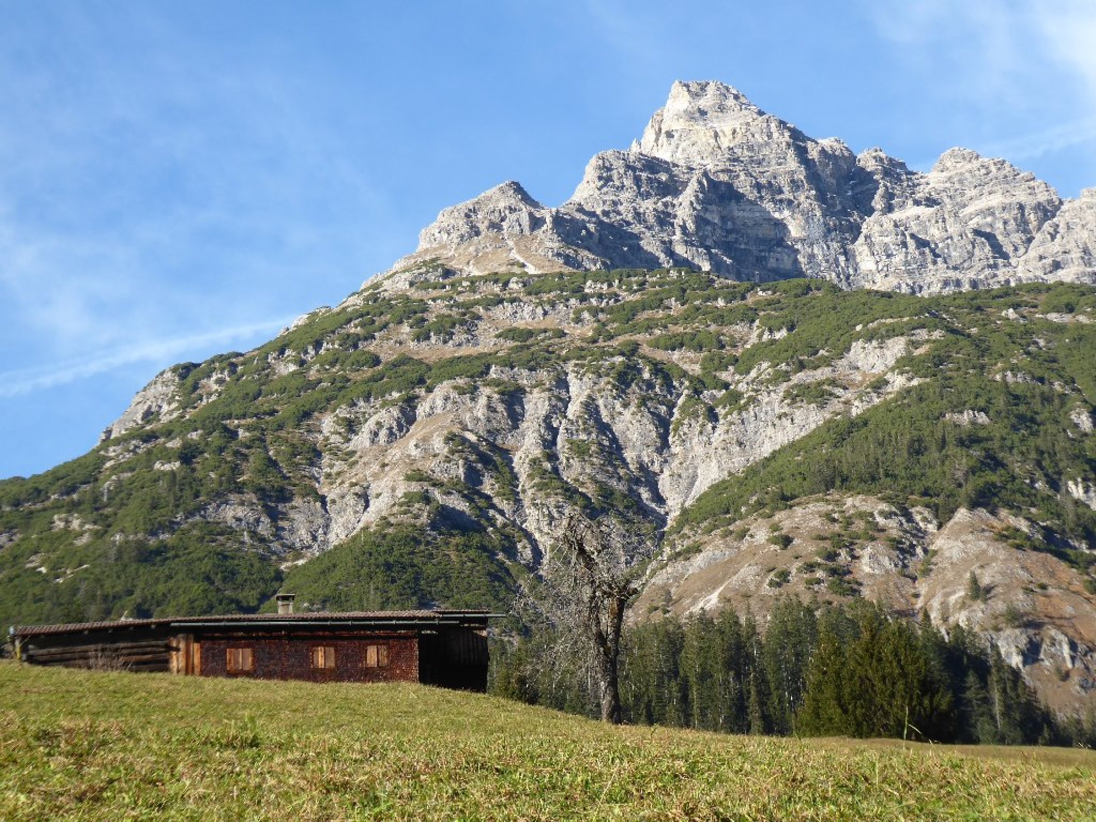 Hinterhornbach Kanzberg Karlesspitze Hinterhornbach P Gufelbrücke Str. hoch über Bretterhof Richtung Jochbachtal. Der breite Weg wird bald links steil durch Hochwald verlassen, Richtung Kanzberg(bez.). Es zieht sich nach Wald und Krummholz bzw. Latschen bis zur Hirtenhütte auf den Kanzbergrücken, kurz danach Steinmann mit höchsten Punkt Kanzberg 2009m. Weiter durch welliges Gelände, die Karlesspitze wird westl. umgangen und dann steil zum Grat hoch. Über Abzweig Horbachjoch weiter zum Gipfel.