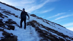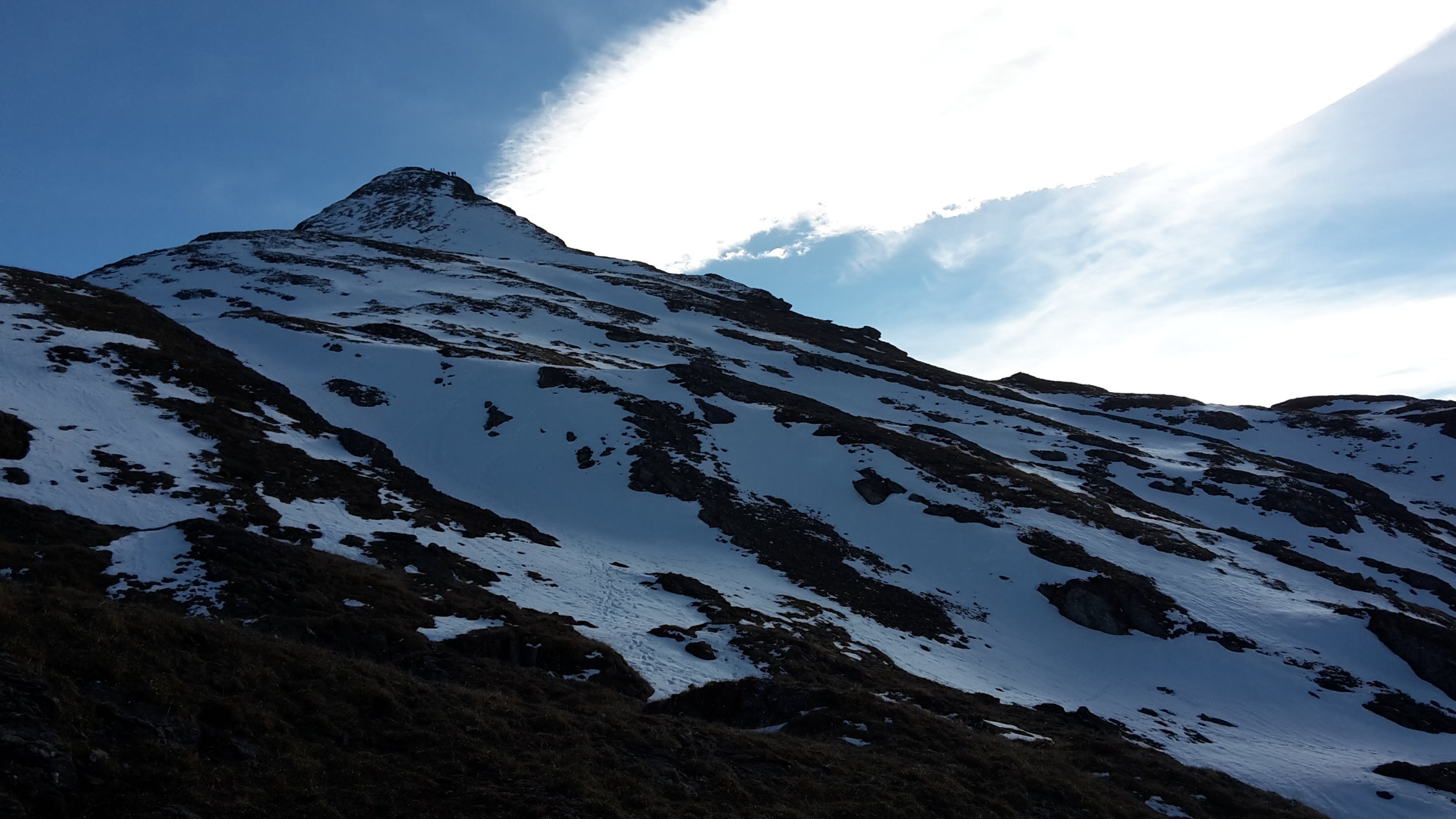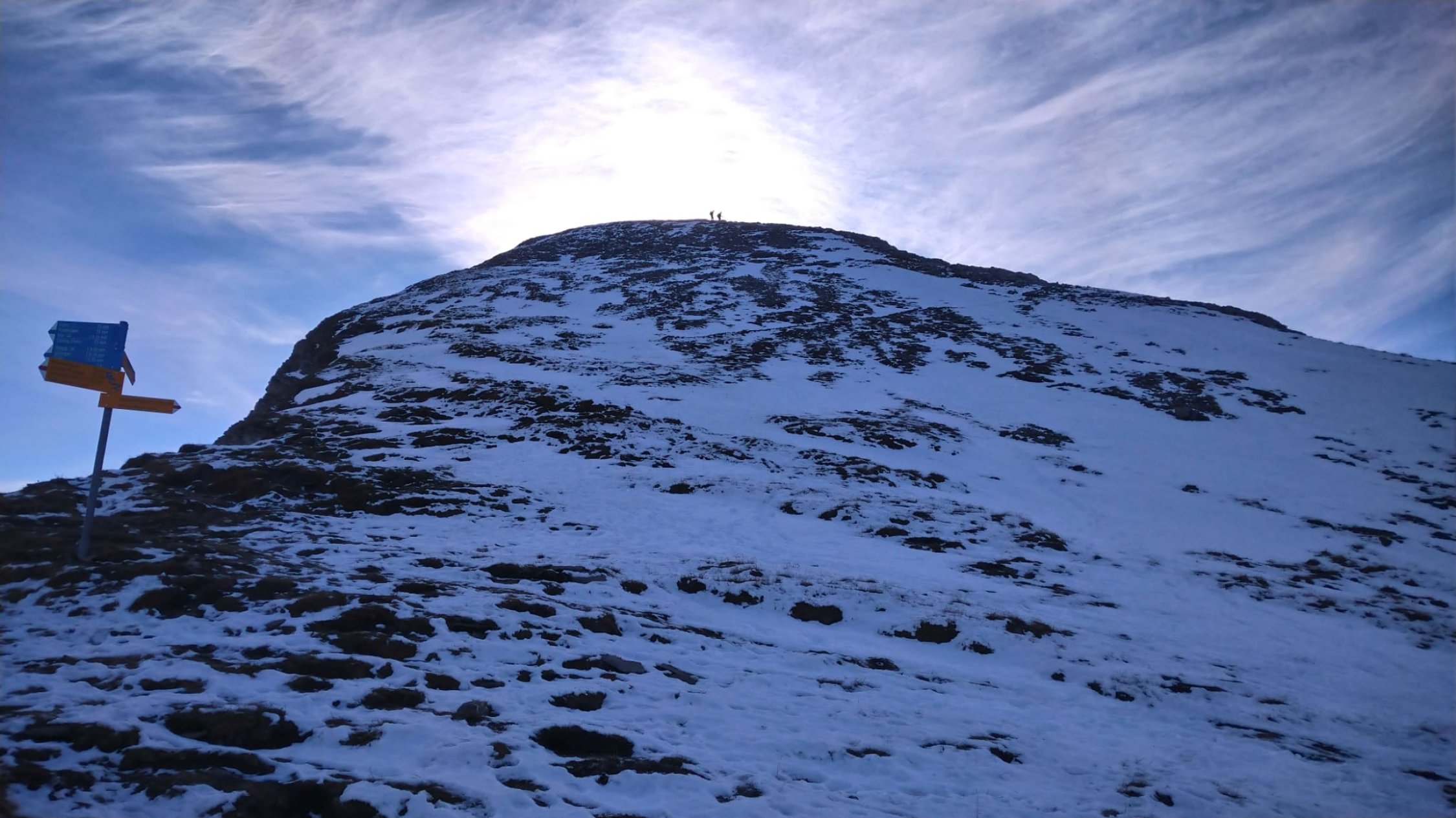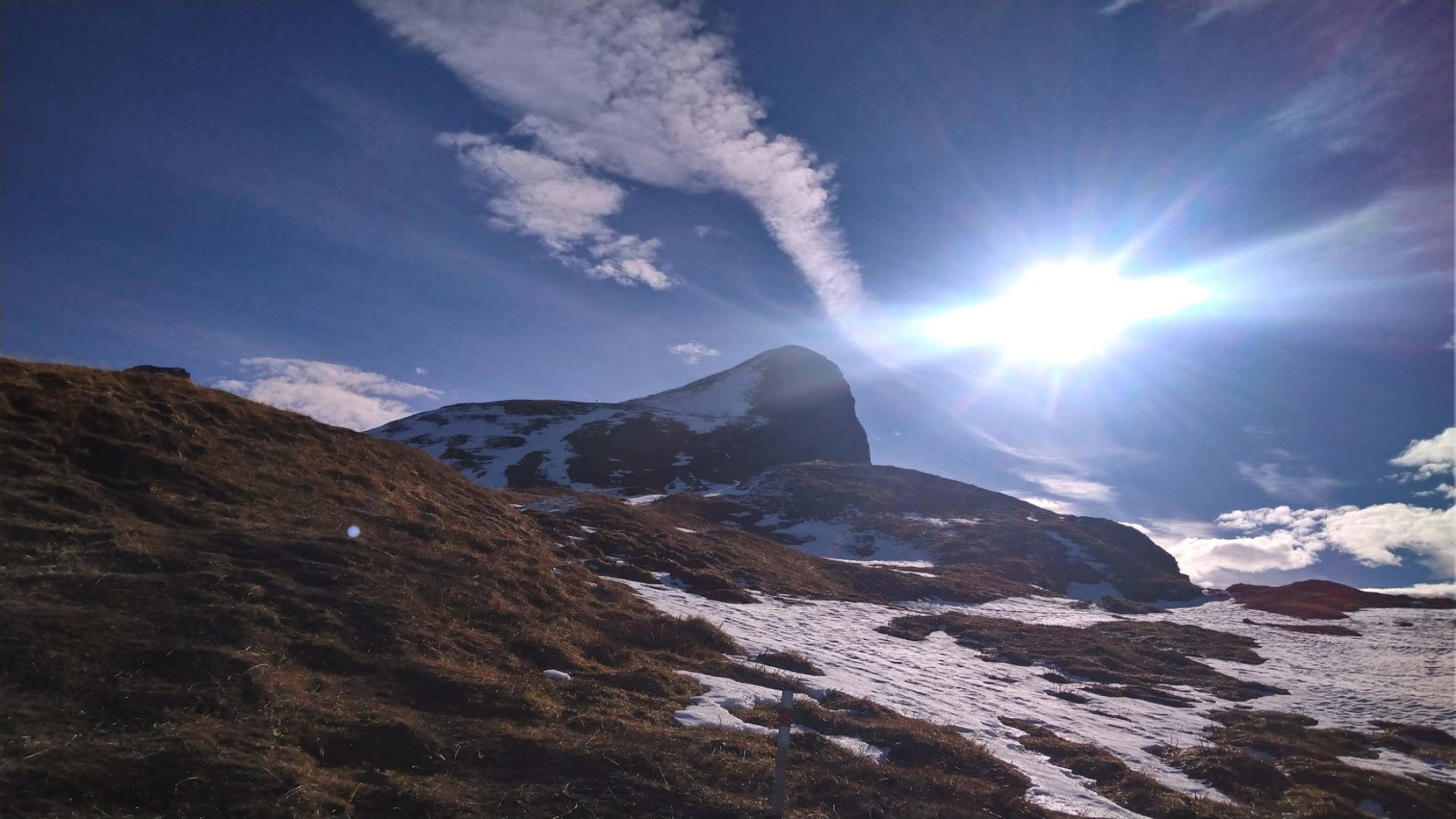 Ab Höhe Mälchbödeli zunehmend Schneefelder. Diese sind durchgefroren und gut zu begehen. Die schneefreien Abschnitte sind ebenfalls trocken. Am Gipfelgrat ist etwas mehr Aufmerksamkeit gefordert. Hier und da lauert ein vereister Tritt! Grödel oder Pickel sind jedoch nicht notwendig.