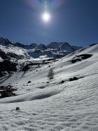 Traumtag mit Top-Firnverhältnissen! Abfahrt um 11:30 Uhr. Schnee ist gut gesetzt. auf Steine achten, da die Schneedecke teils schon recht dünn ist.