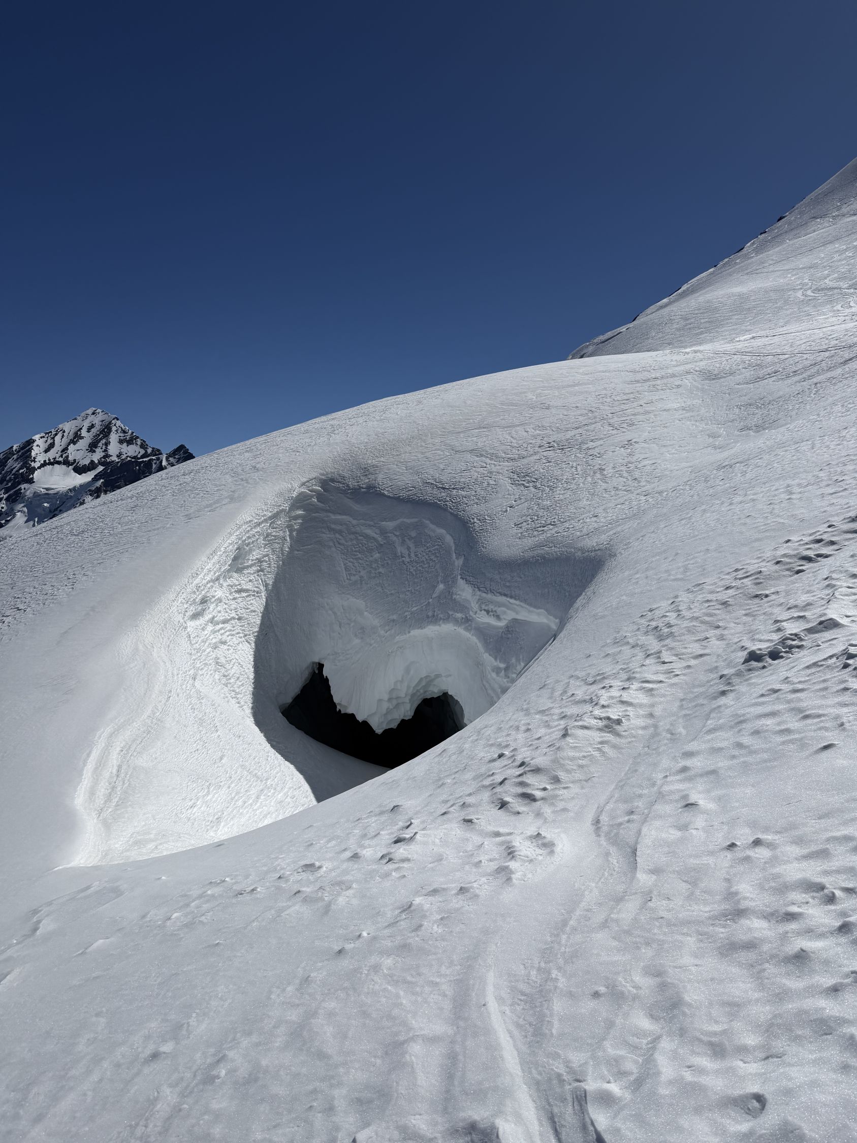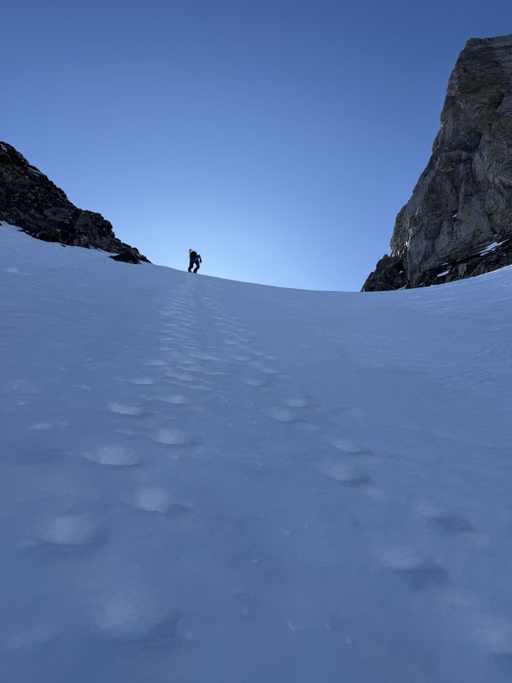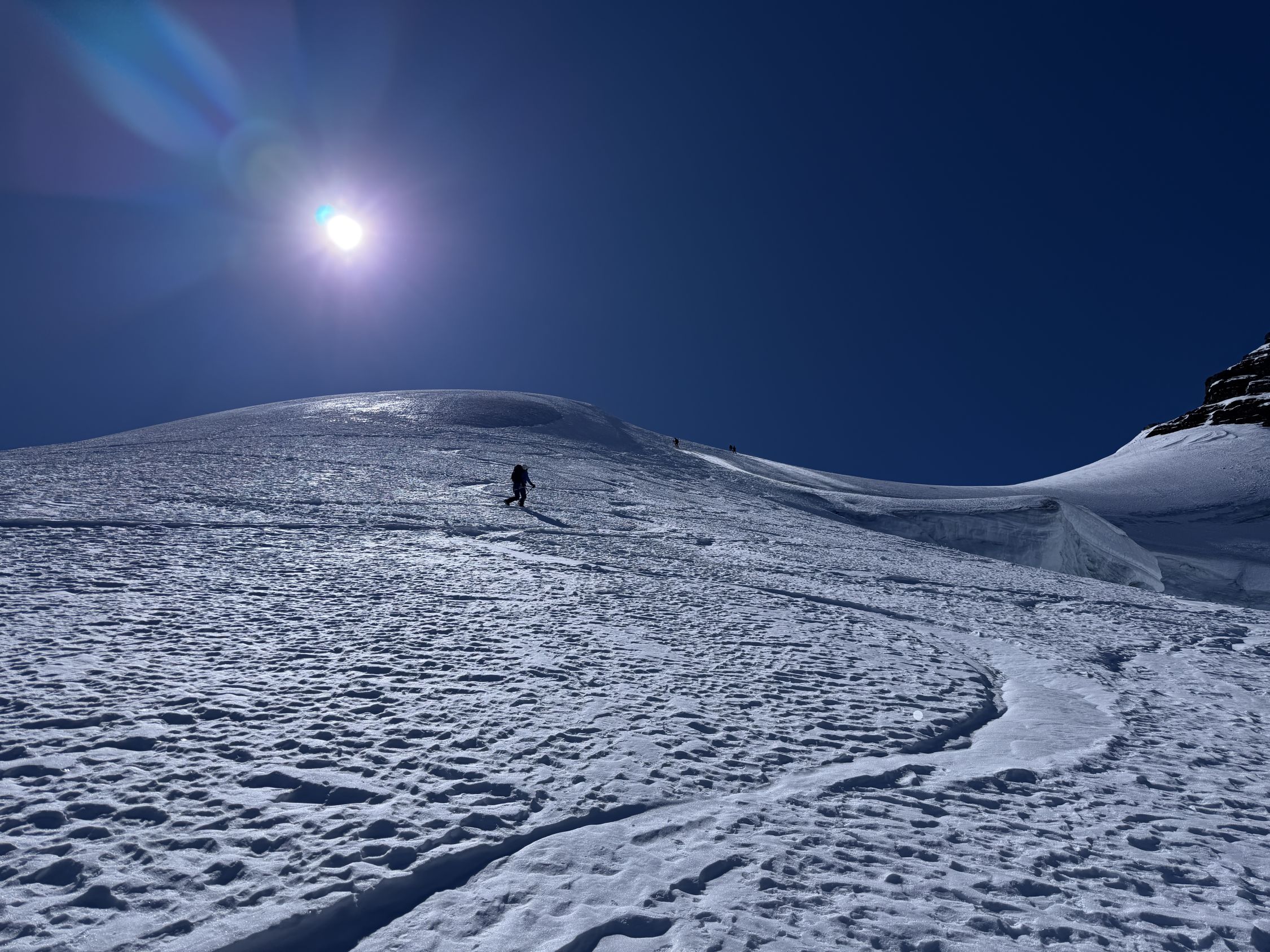 Die zwei Steilstufen auf 2900m und 3400m haben wir jeweils mit Steigeisen gemacht.