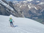 Die untere der Steilstufen sind wir abgerutscht, man hätte aber auch östlich über den Gletscher gekonnt.