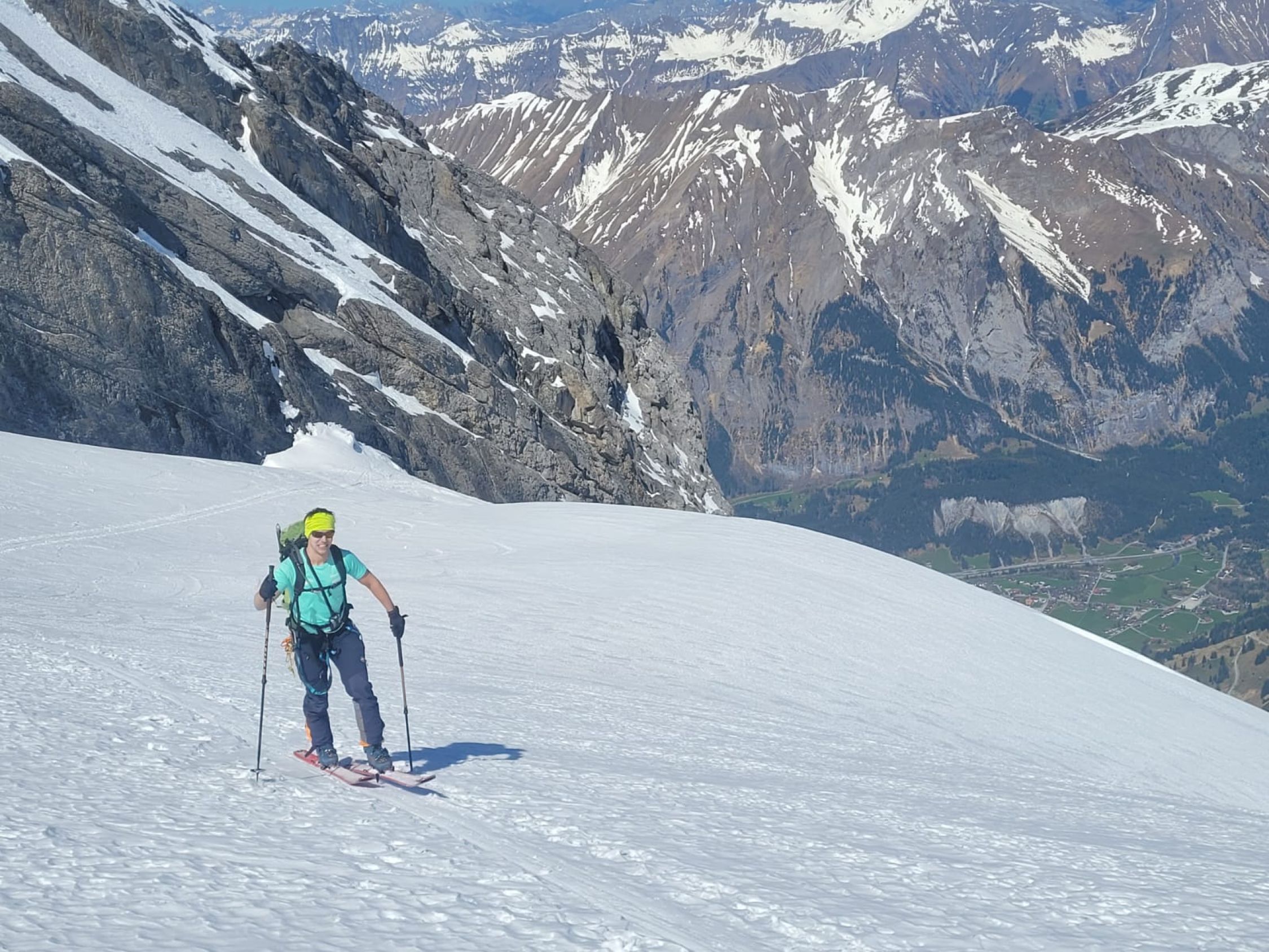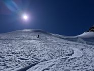 Es hat sehr guten Schnee. Oben durchgehend pulvrig, mal mehr mal weniger windgepresst aber wunderbar zu fahren.
