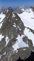 Ab Übergang Tiarms bis Pkt. 2560m einige kurze apere Stellen. Eine längere Tragepassage.