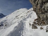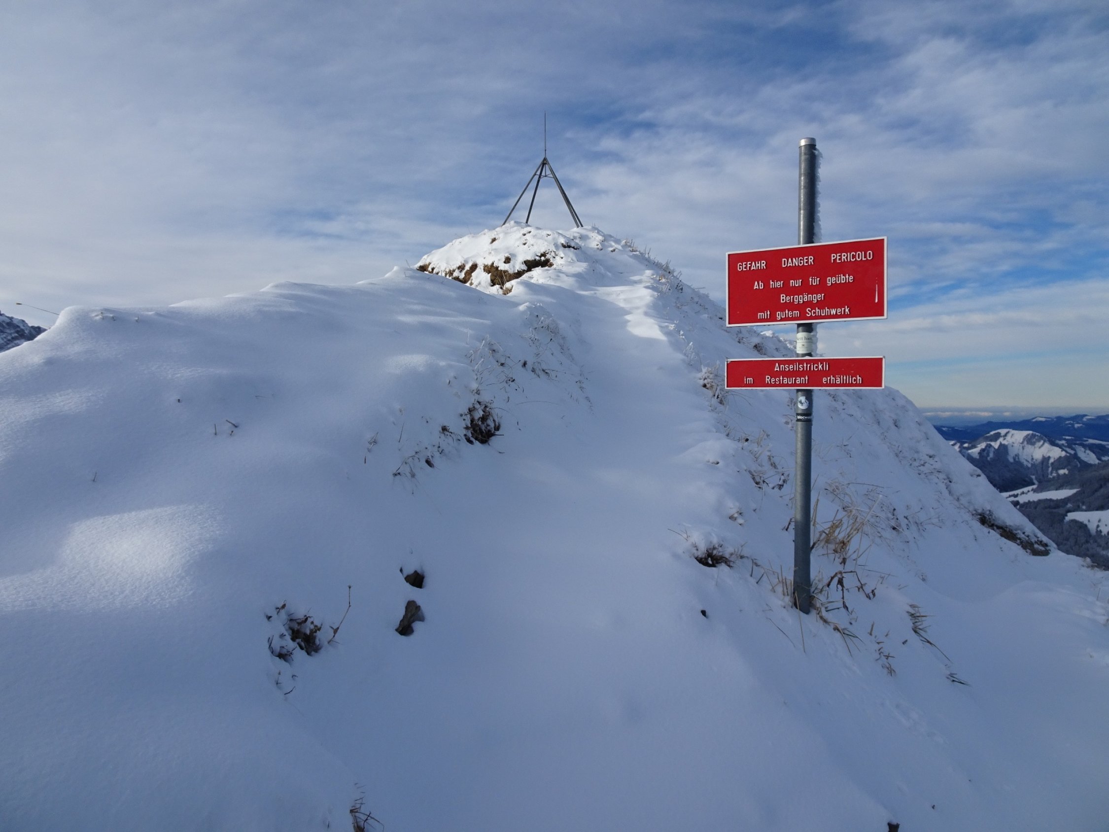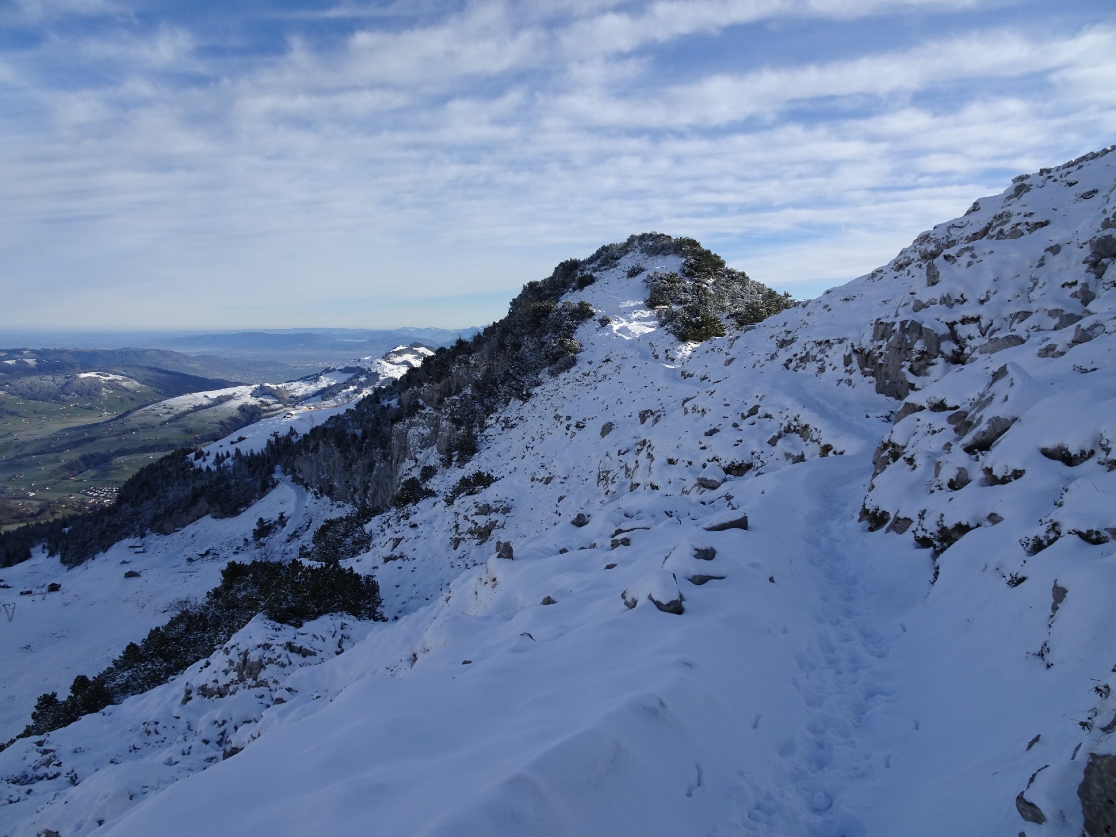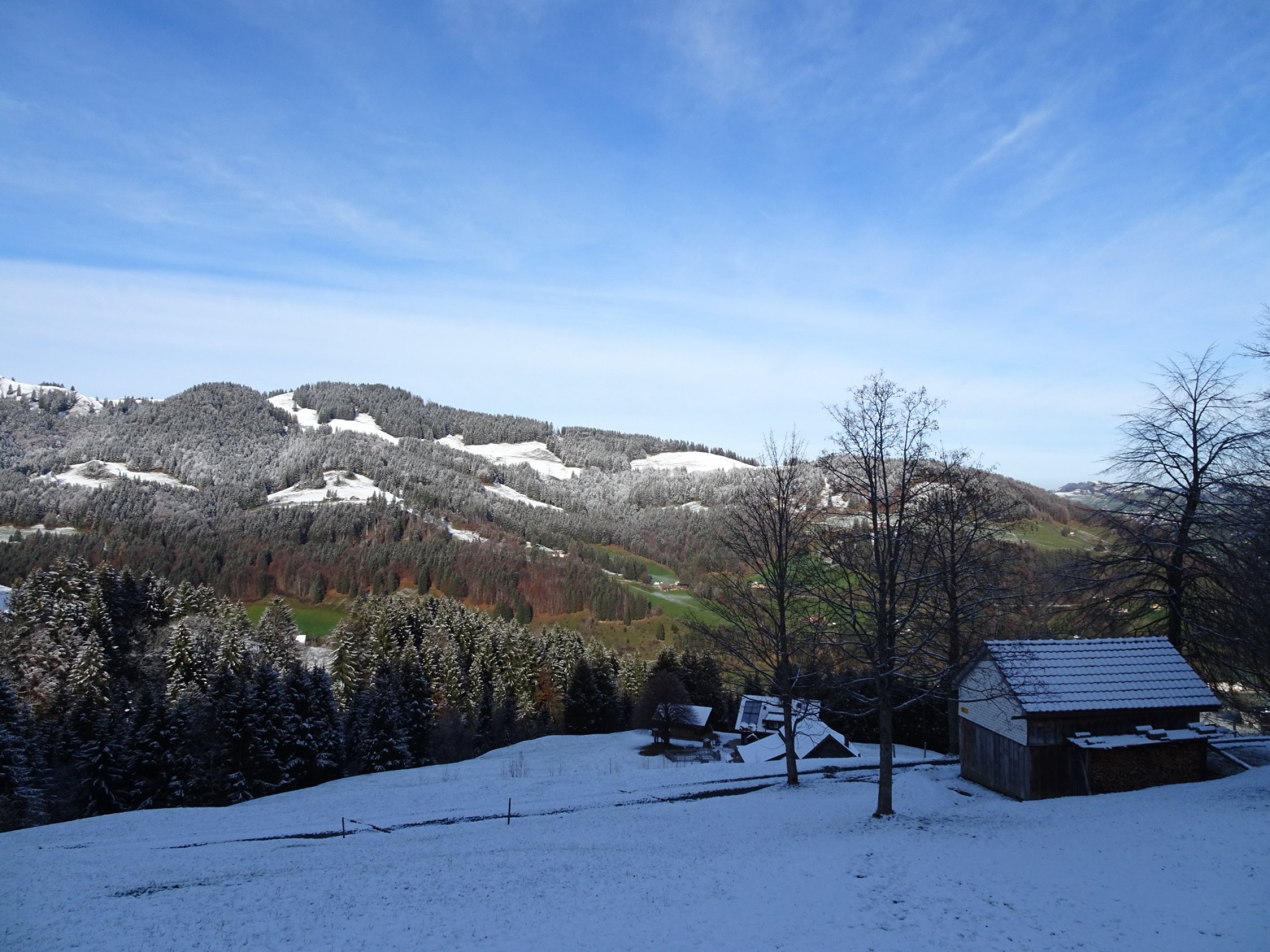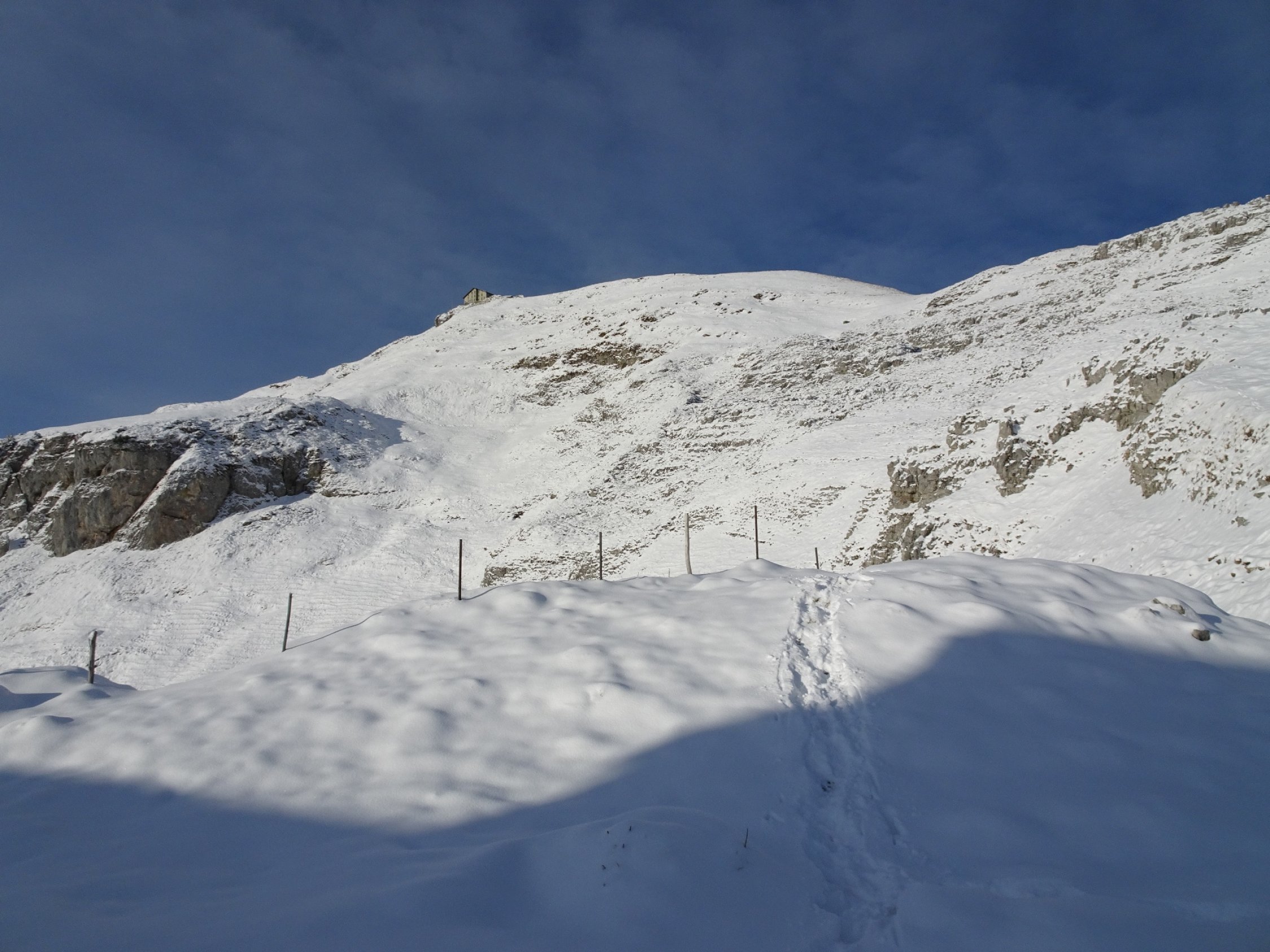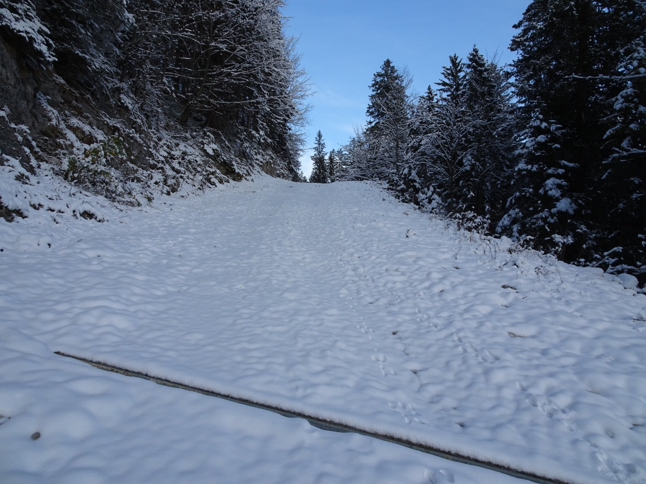 Erster Schneekontakt auf ca. 1‘100 Meter. Mit zunehmender Höhe auch zunehmende Schneehöhe, aber kaum Mal über 25 cm.