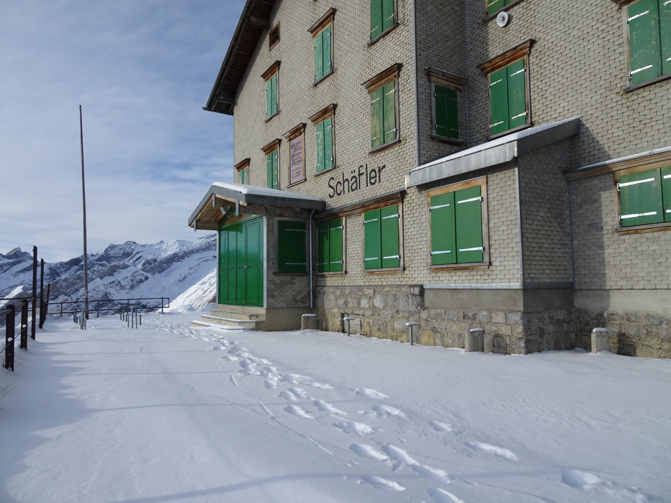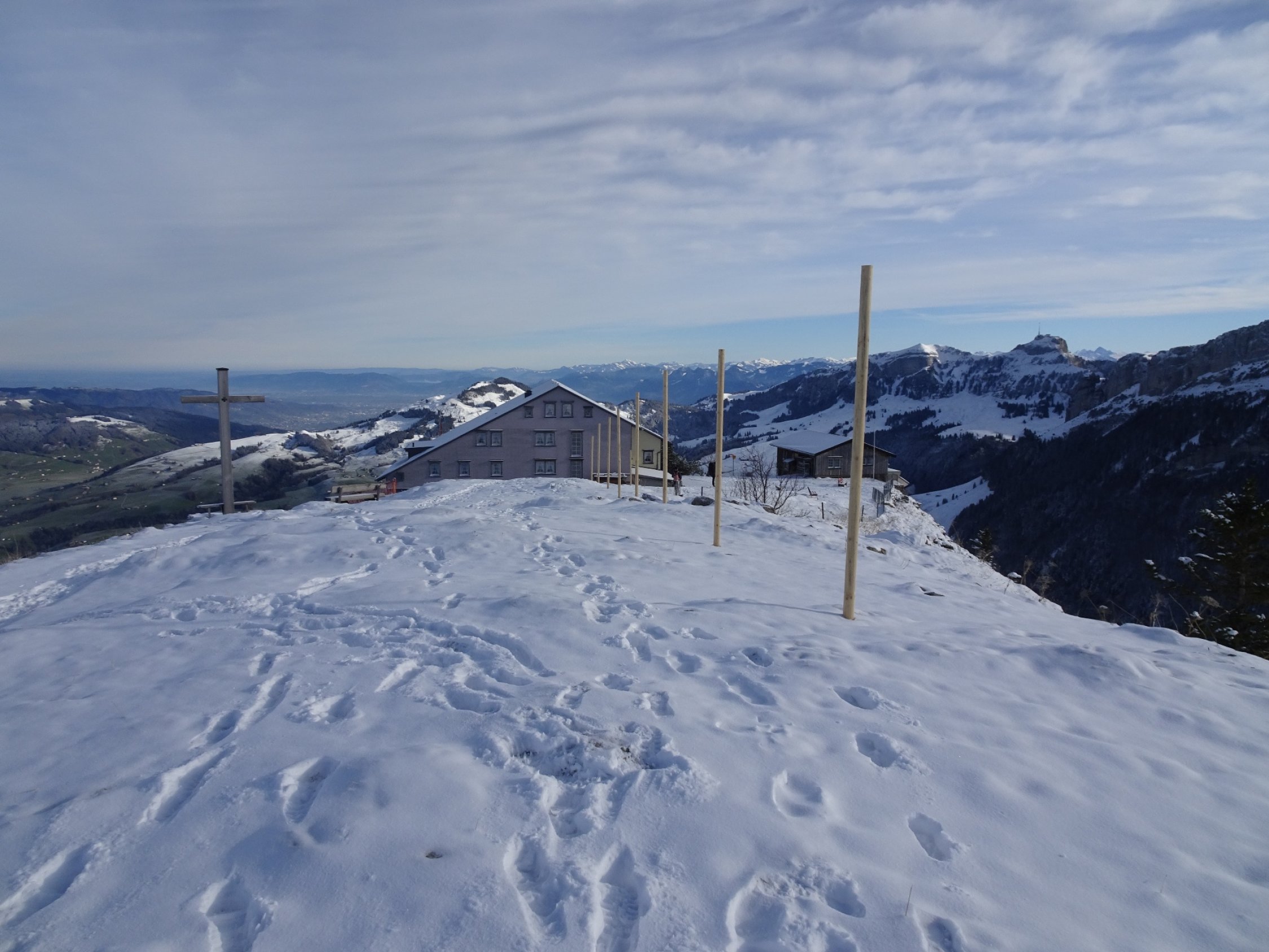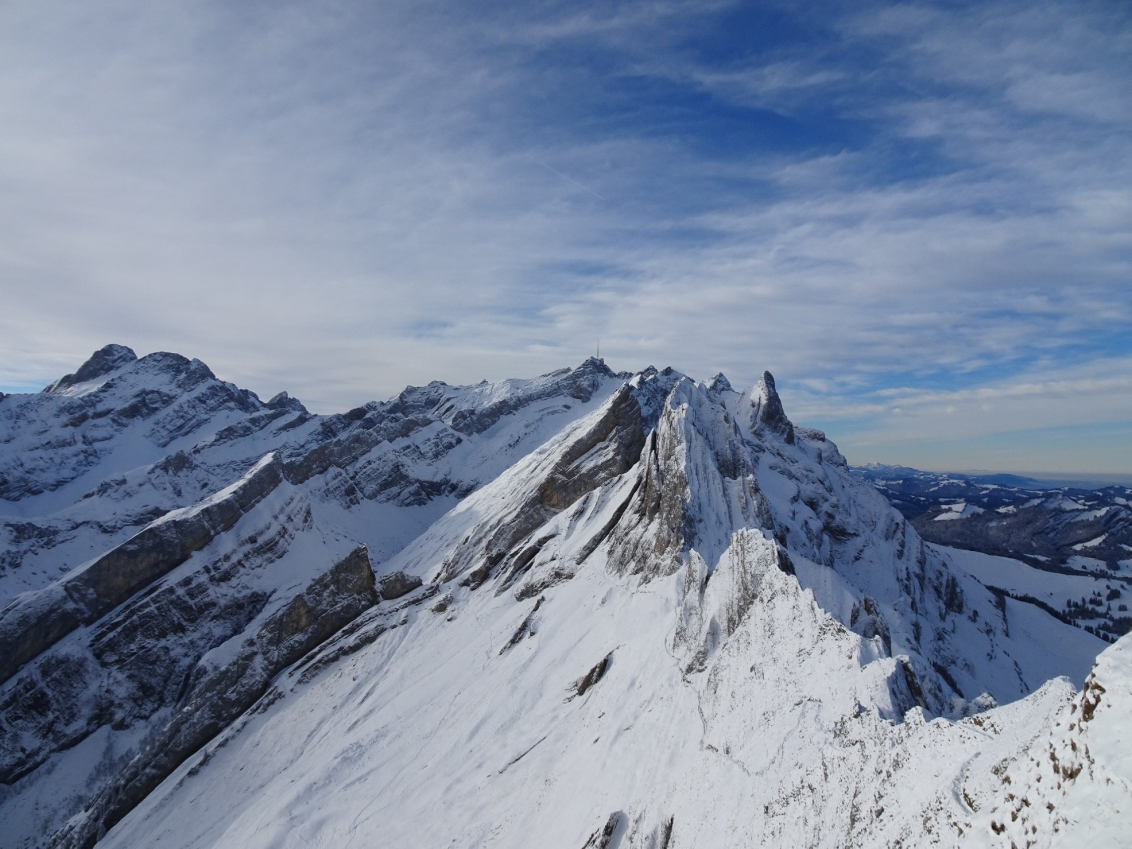 Am Morgen war es nur bis P.1316 gespurt, danach nur 3 Tierspuren. Aber von der Ebenalp Via Chlus kamen einige Schäfleraspiranten...
