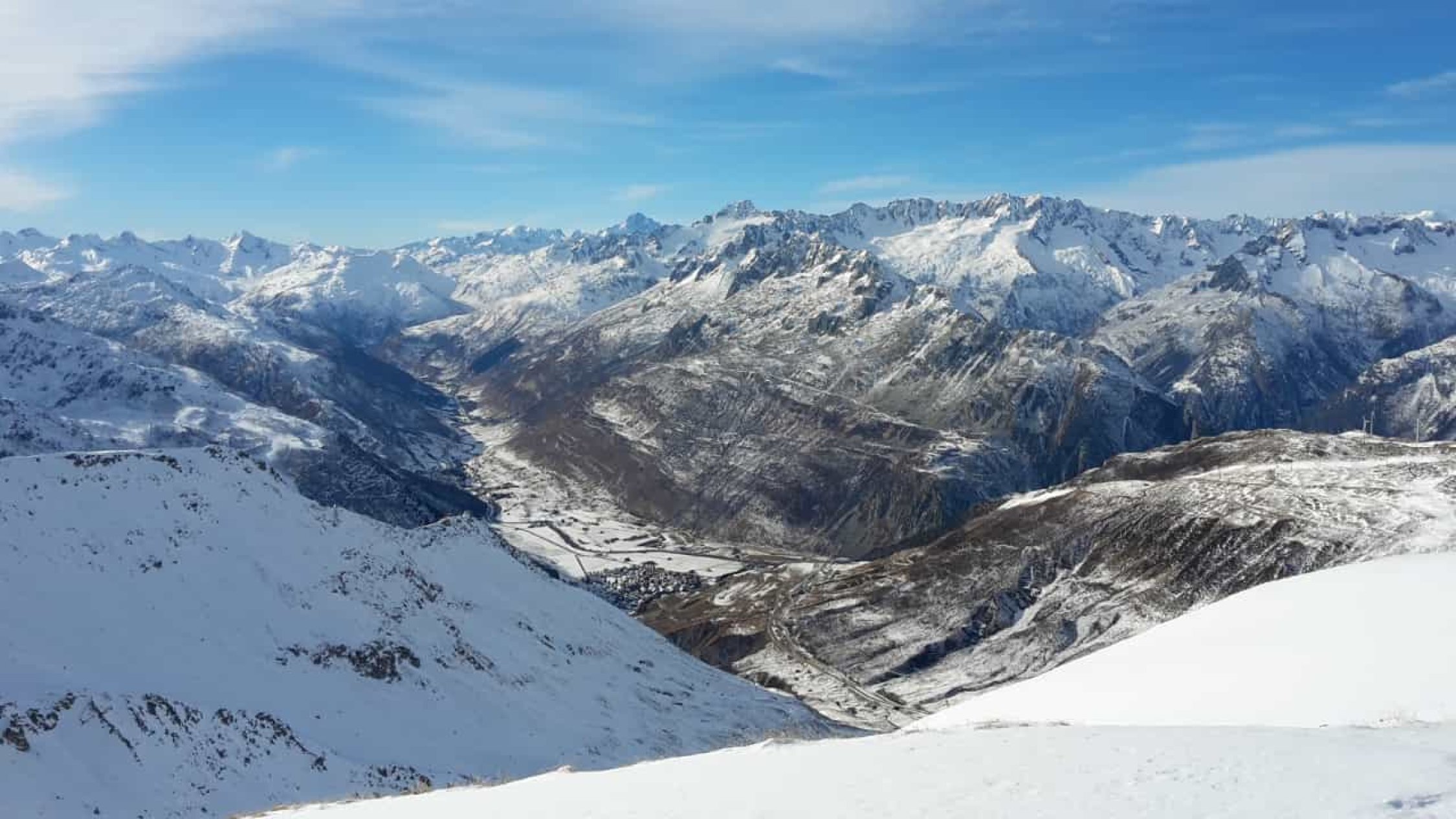 Start der Tour auf dem Pass 10.oo Uhr bei-2°C(Andermatt-6°C). Nahezu windstill und sonnig, einige Schleierwolken. Ich habe heute für Aufstieg und Abfahrt die Sommerroute gewählt. Man kann die Ski direkt am Auto (oder alternativ Zug) anschnallen.