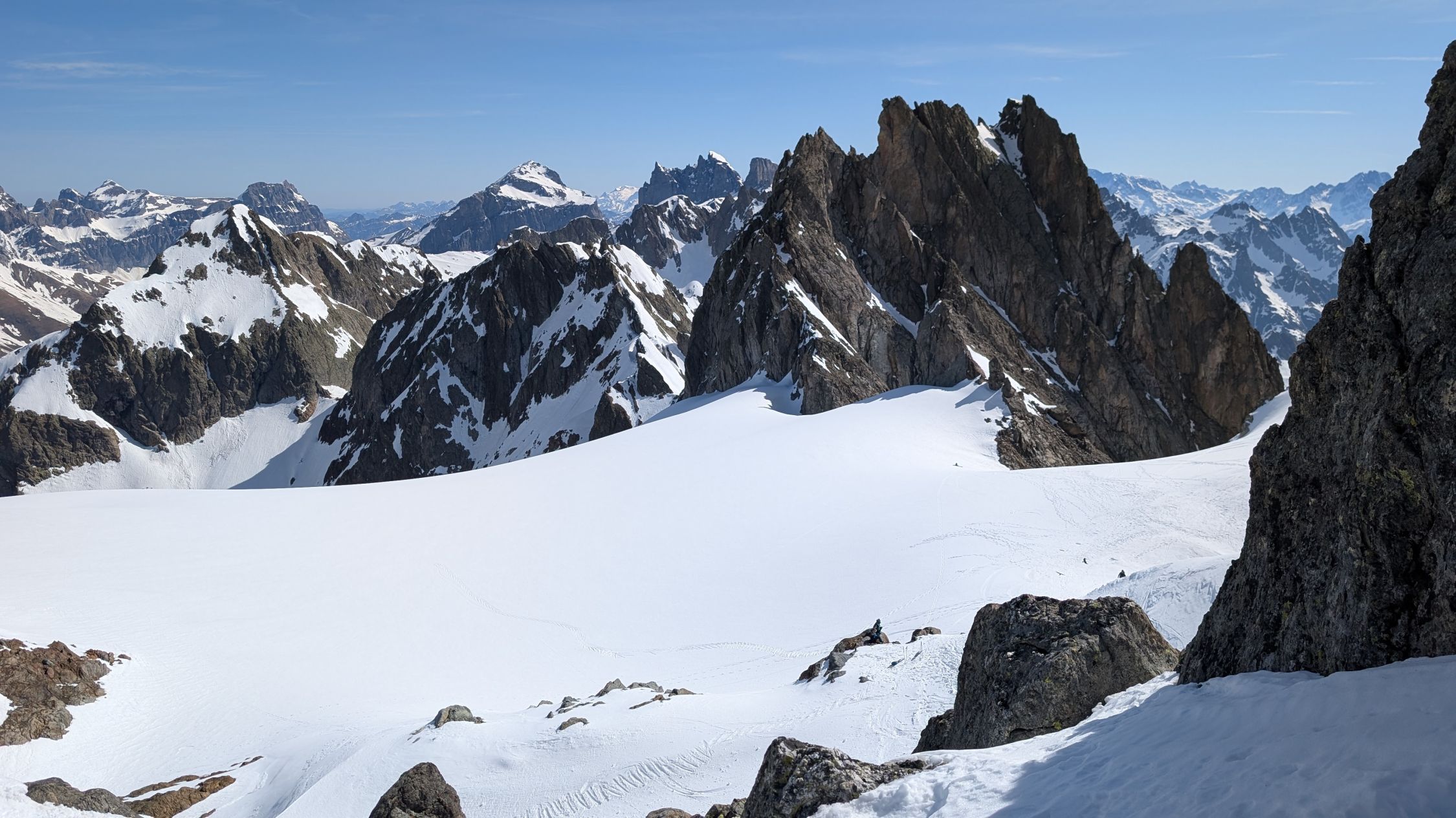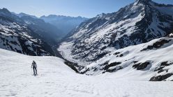 Abfahrt: Abfahrt um ca. 10:30. Sehr schöner Firn bis ca. 2.100m, ab dann weicher und teils Bremsschnee. Wir sind die Variante südlich der Haupt- und Aufstiegsroute gefahren.