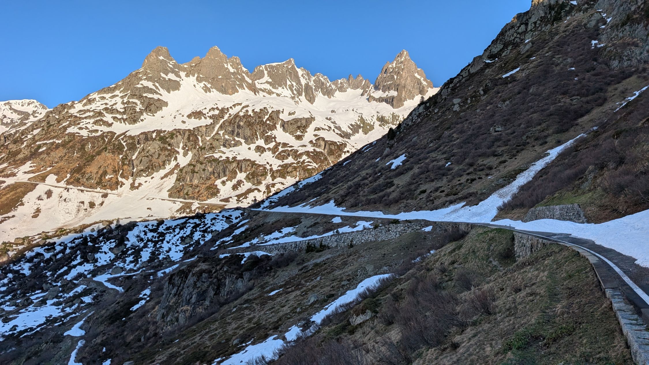 Aufstieg: Start zur Tour heute gegen 06:40. Der untere Weg lohnt nicht mehr, viele Unterbrüche in der Schneedecke. Besser auf der Passstrasse bleiben.