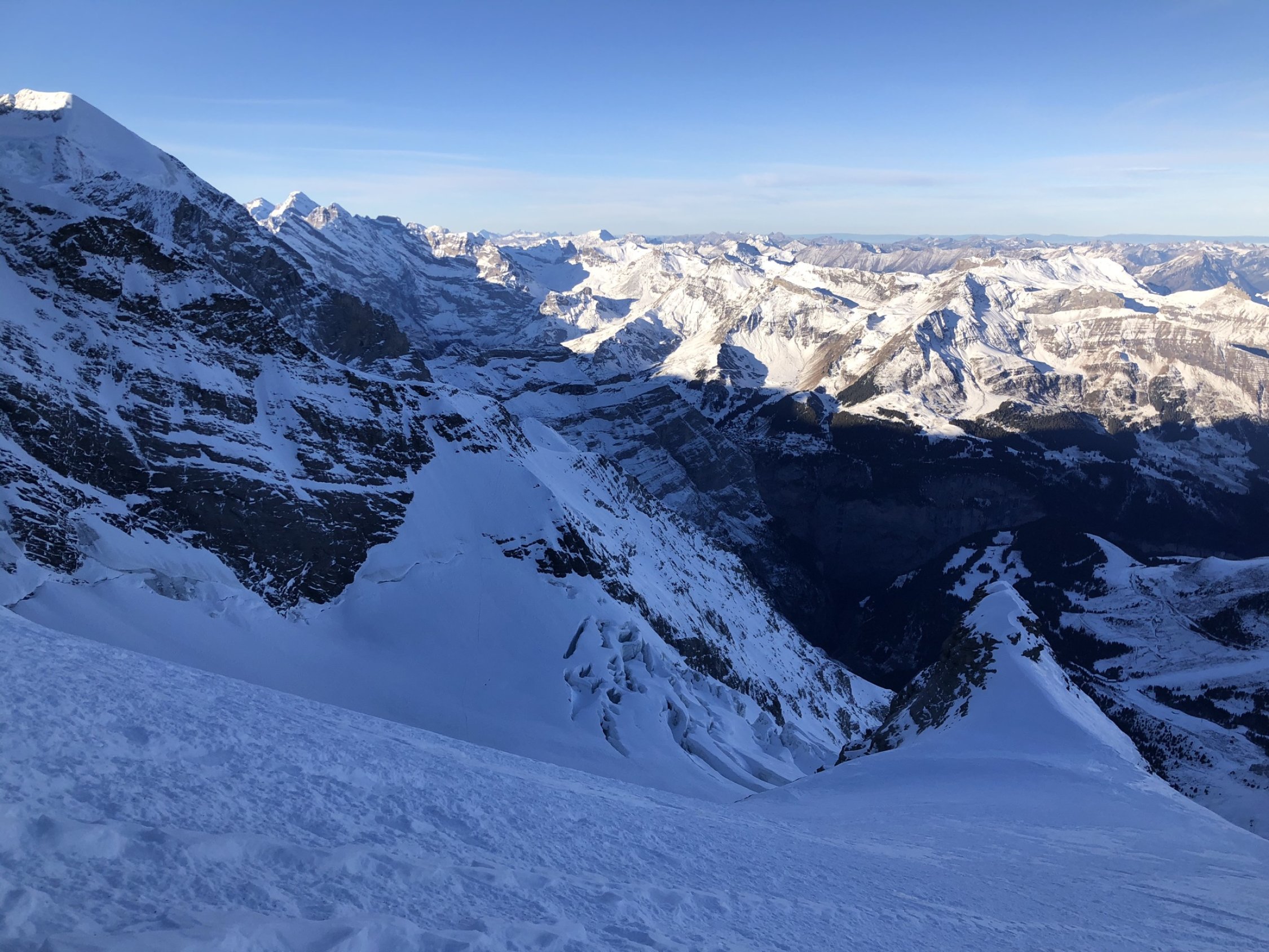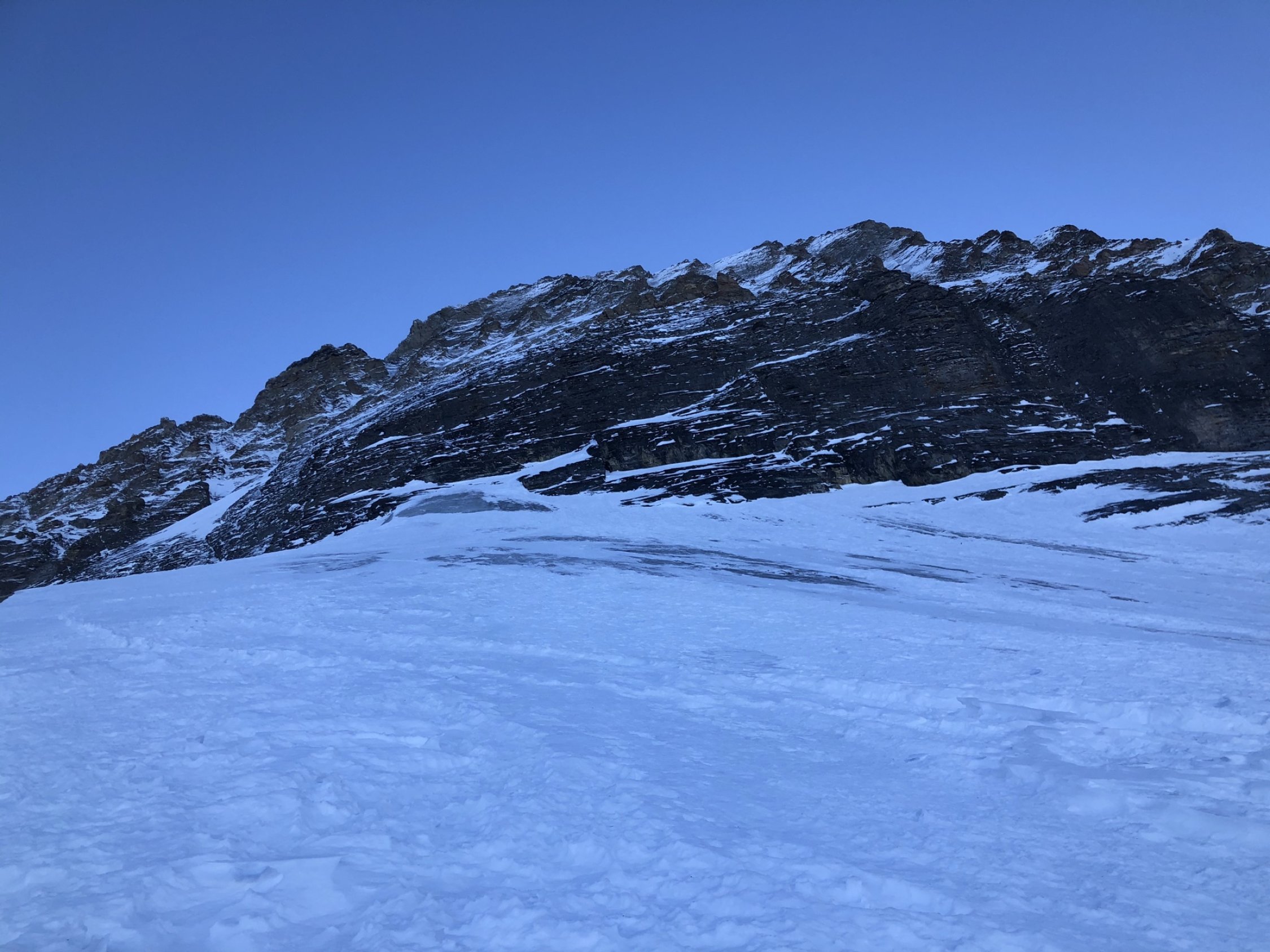 Bis Mönchsplateau immer wieder Gewühle, teilweise aber auch tragend. Abstieg und Querung gut.