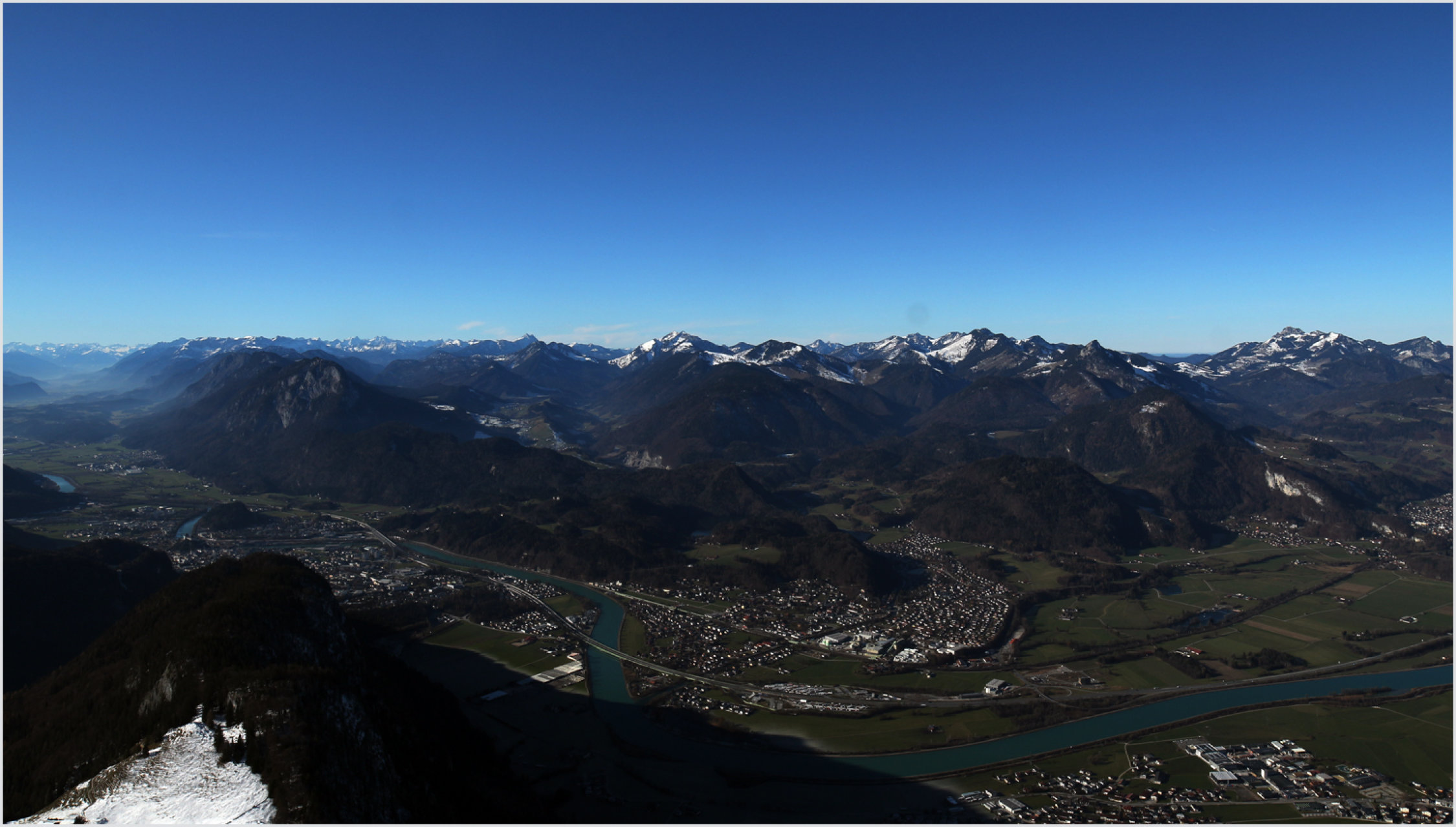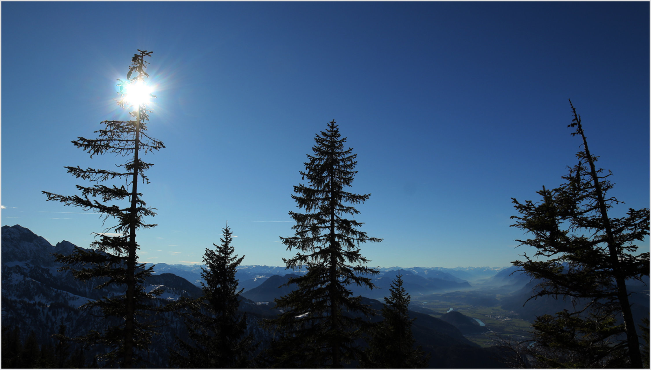 Blick in die Runde: Es hat gerade soviel geschneit, dass wieder alles angezuckert ist. Wert ist das allerdings nichts. Südseitig ist der Schnee bis 2000m bald wieder weg. Dann sollten die südseitigen Touren im Wilden Kaiser auch wieder gehen.