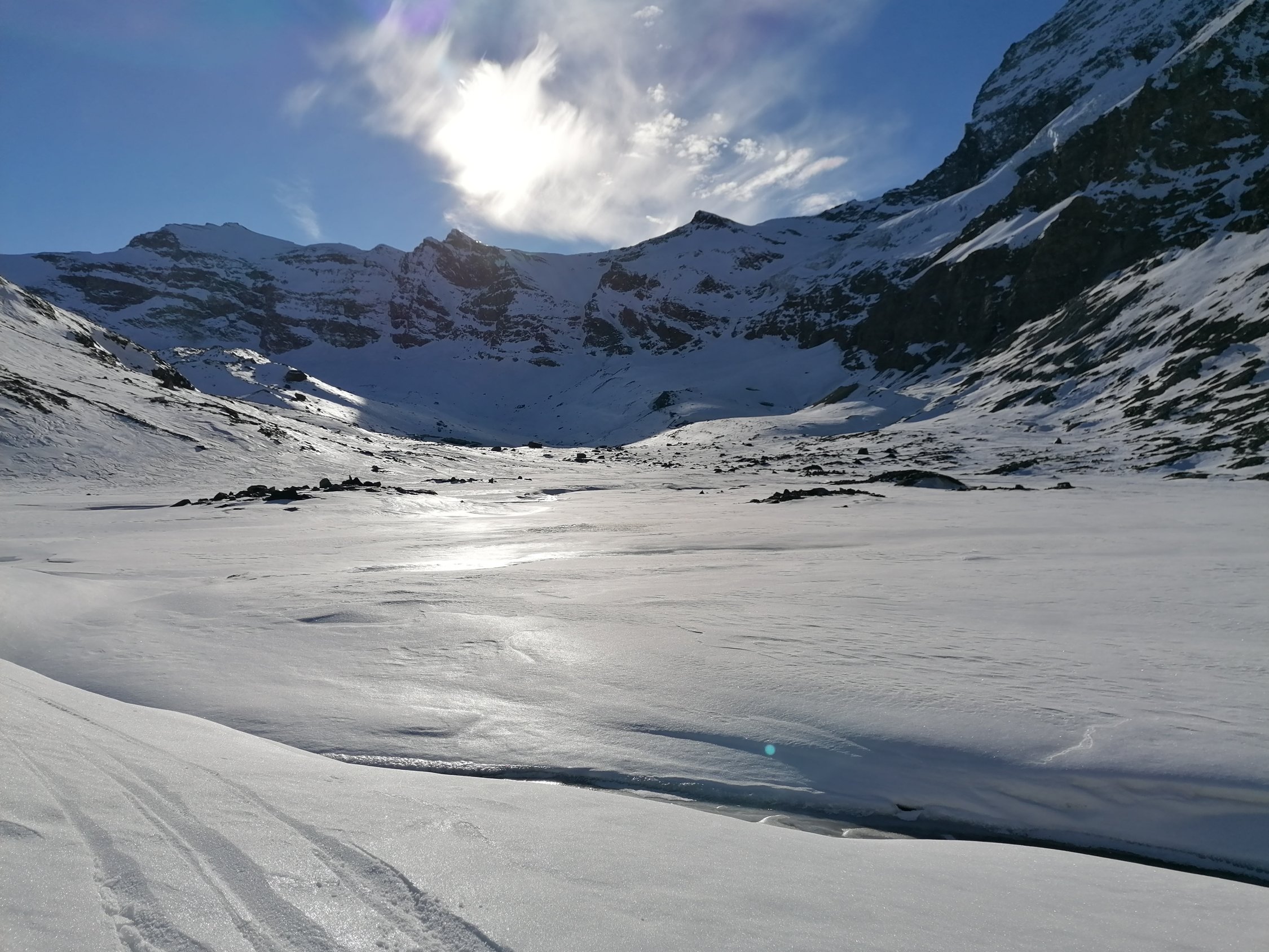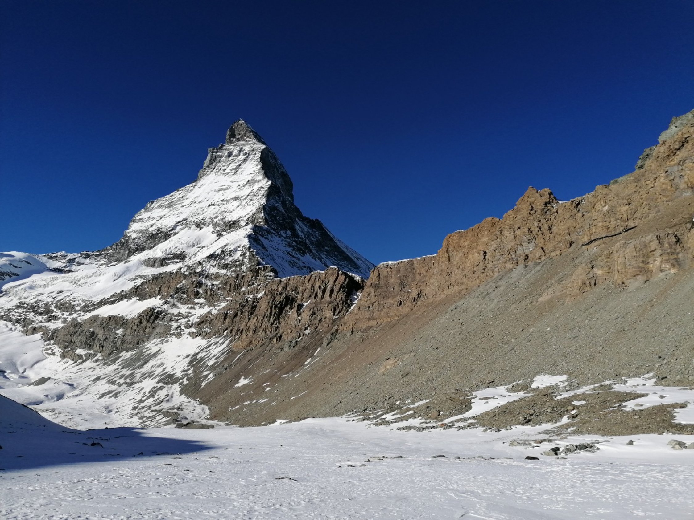 Wunderschöne und einsame Skitour inmitten der grandiosen Zermatter Bergwelt. Der Aufstieg führt direkt am Fusse der Matterhorn Ostwand hinauf. Man hat einen unbeschreiblichen Blick auf den schönsten Berg der Erde.