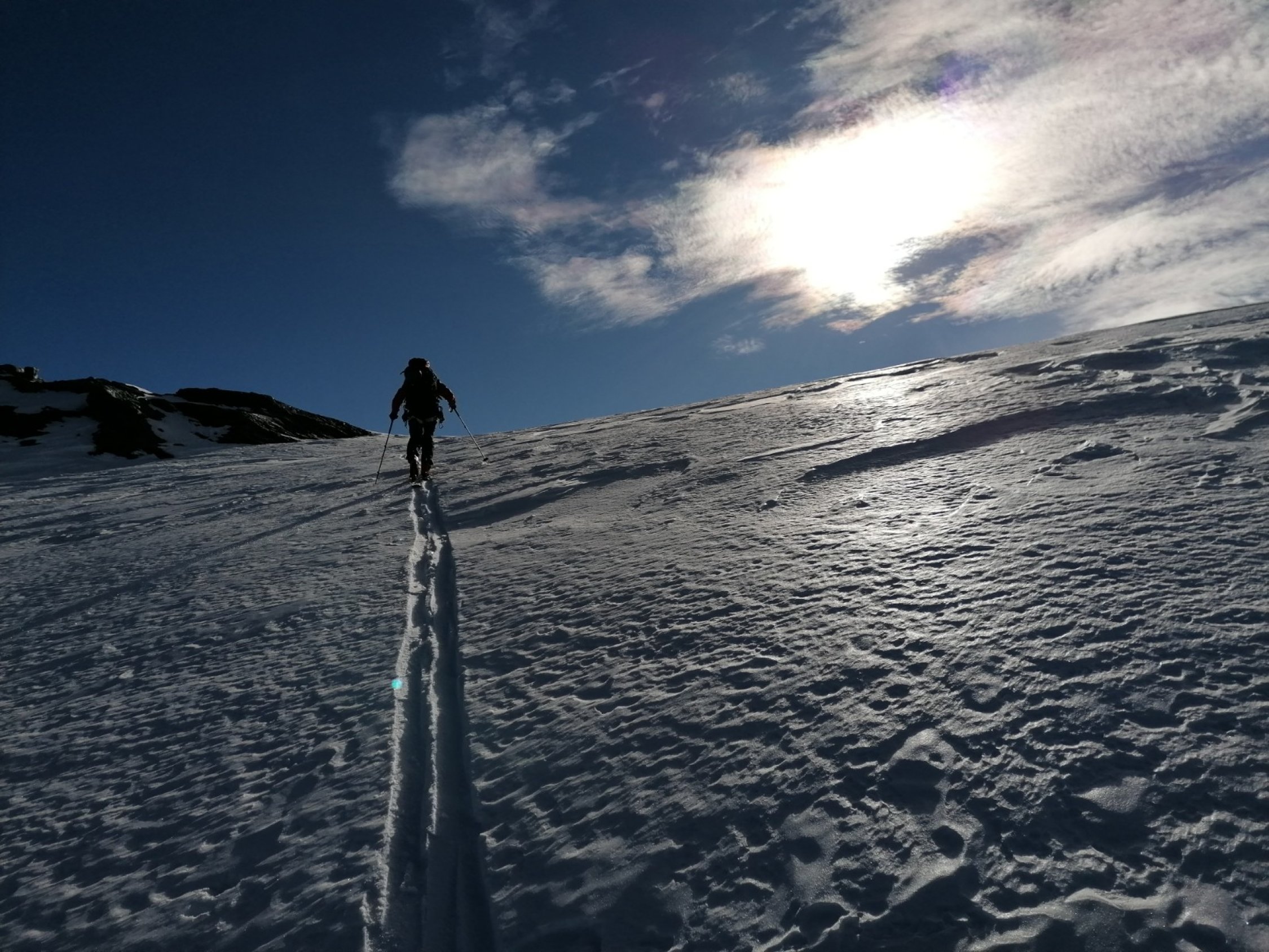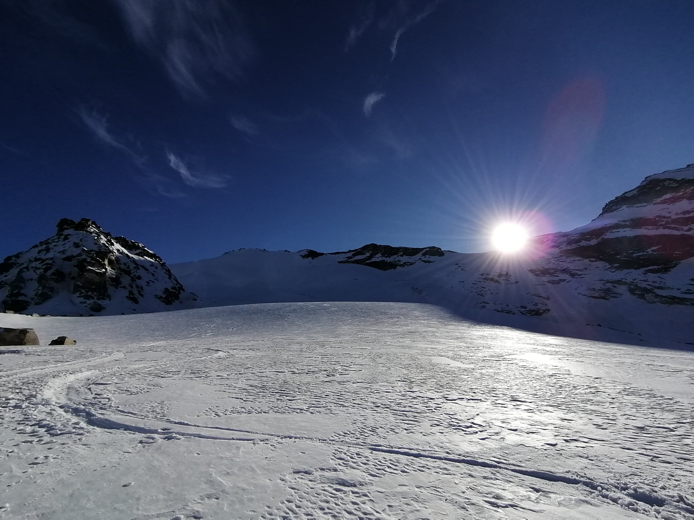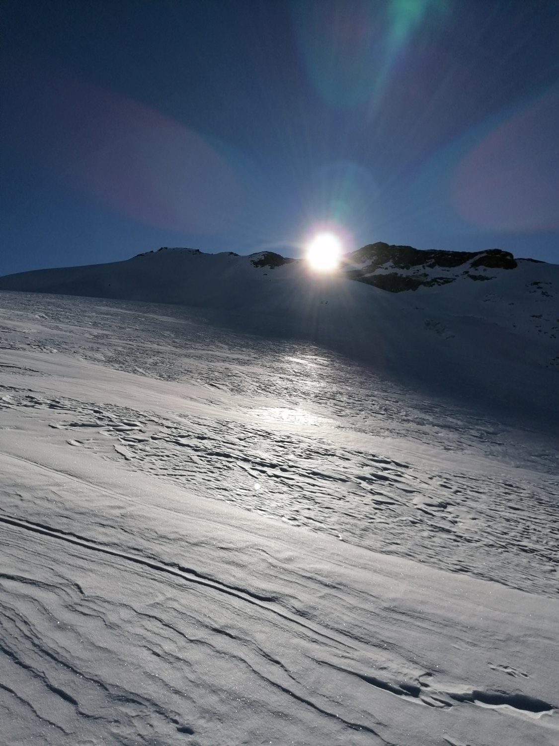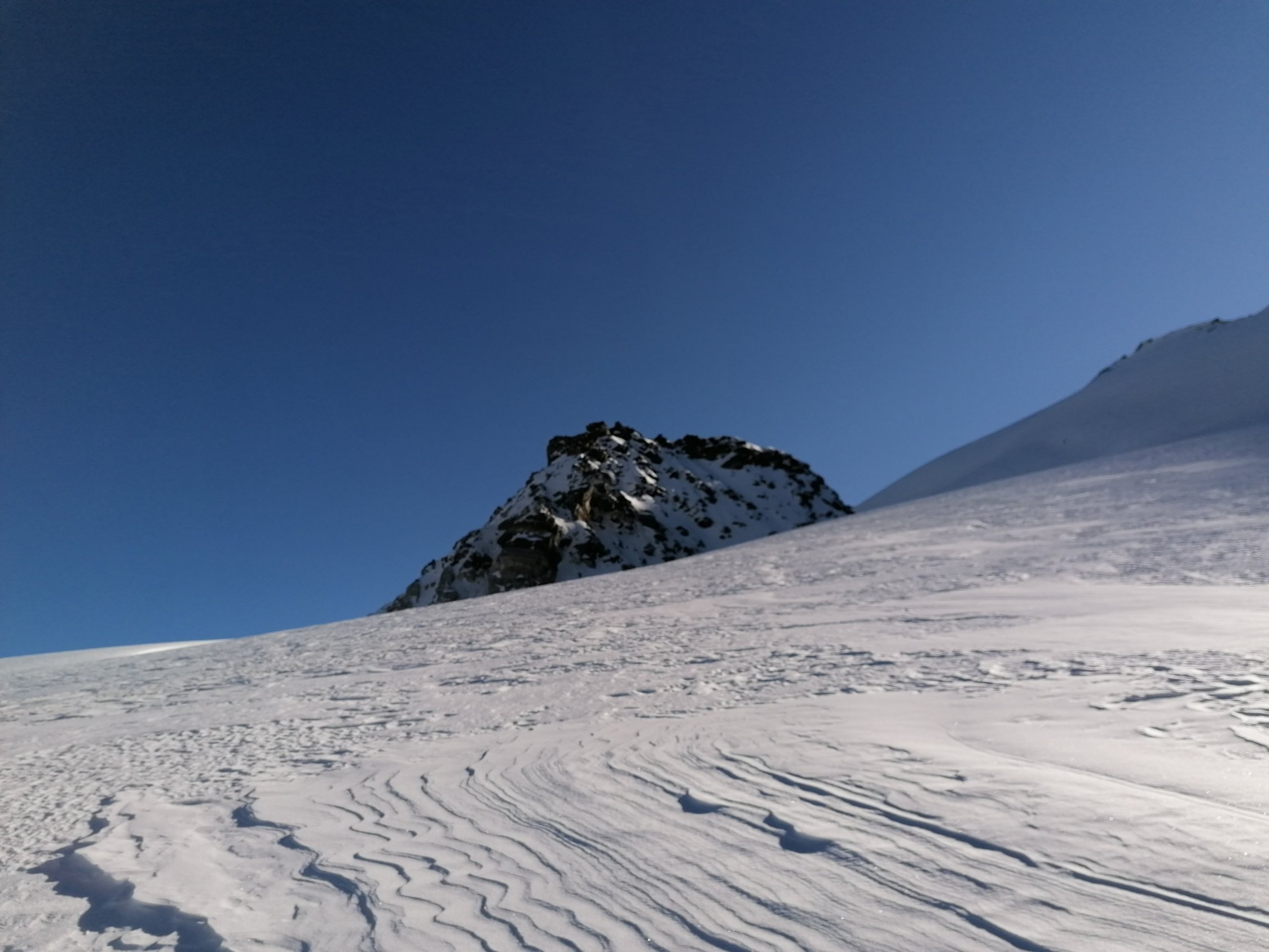 Beim Aufstieg und der Abfahrt fanden wir wunderbare Schneebedingungen vor. D.h. Es hatte Firn und frischen Pulverschnee von 10cm bis 20cm auf einer tragenden Unterlage!