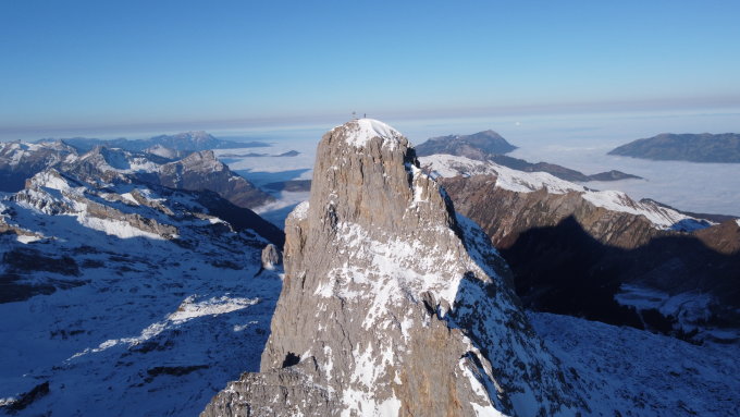 Super Verhältnisse am Grat, guter Trittschnee. Keine Menschnseele im Gebiet. Die Passage bei den Seelenen zieht sich noch im Schnee. Grandiose Fernsicht.