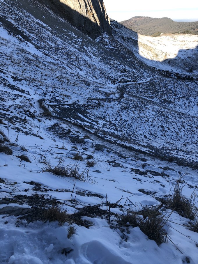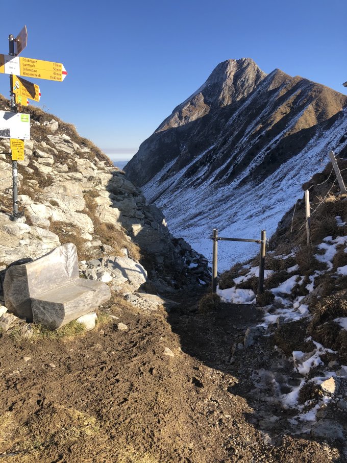 Südseitig; zum teil eisig, matschig und normaler Wanderweg.