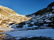 Start auf dem Pass um 08.00 Uhr bei knapp unter 0 Grad. Daher vielerorts eisige Stellen angetroffen, welche aber alle gut umgangen werden können. Bis Hinter Felli nur einzelne Schneefelder, dann bis zur Fellilücke fast durchgehend Schnee, jedoch (zu-) wenig für diese Jahreszeit. Auf der Fellilücke starker Biswind.
