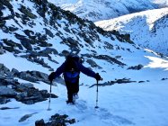 Ab da bis zur Wyssenlücke sind wir mit Schneeschuhen gelaufen, da die Schneehöhe stetig zunehmend und in den schattigen Westhängen noch z.T. bodenloser Powder anzutreffen ist.