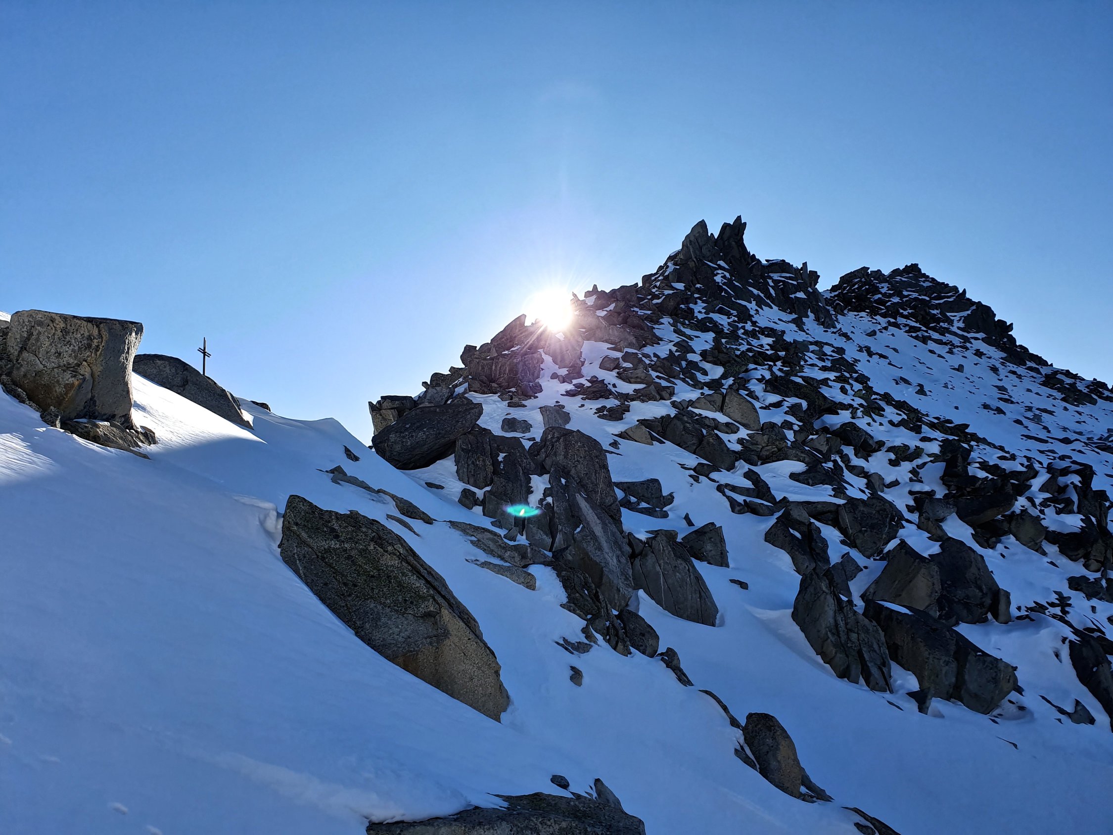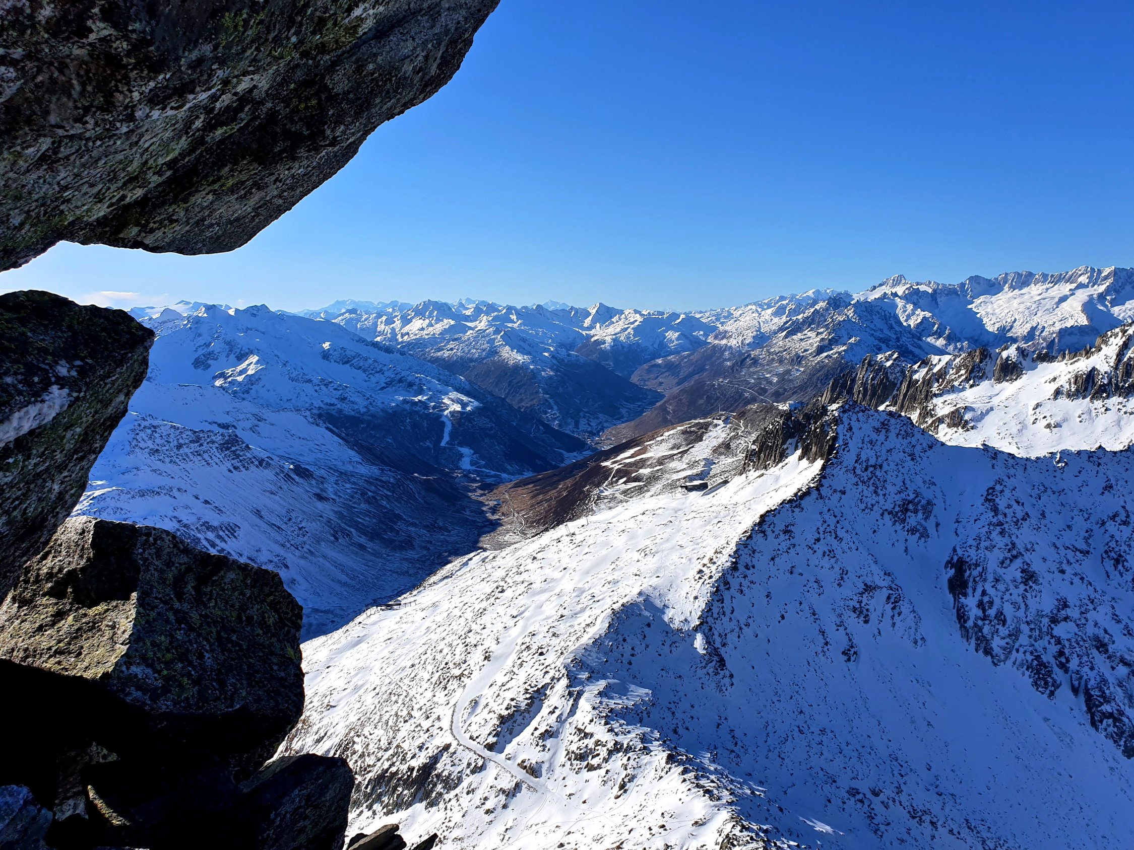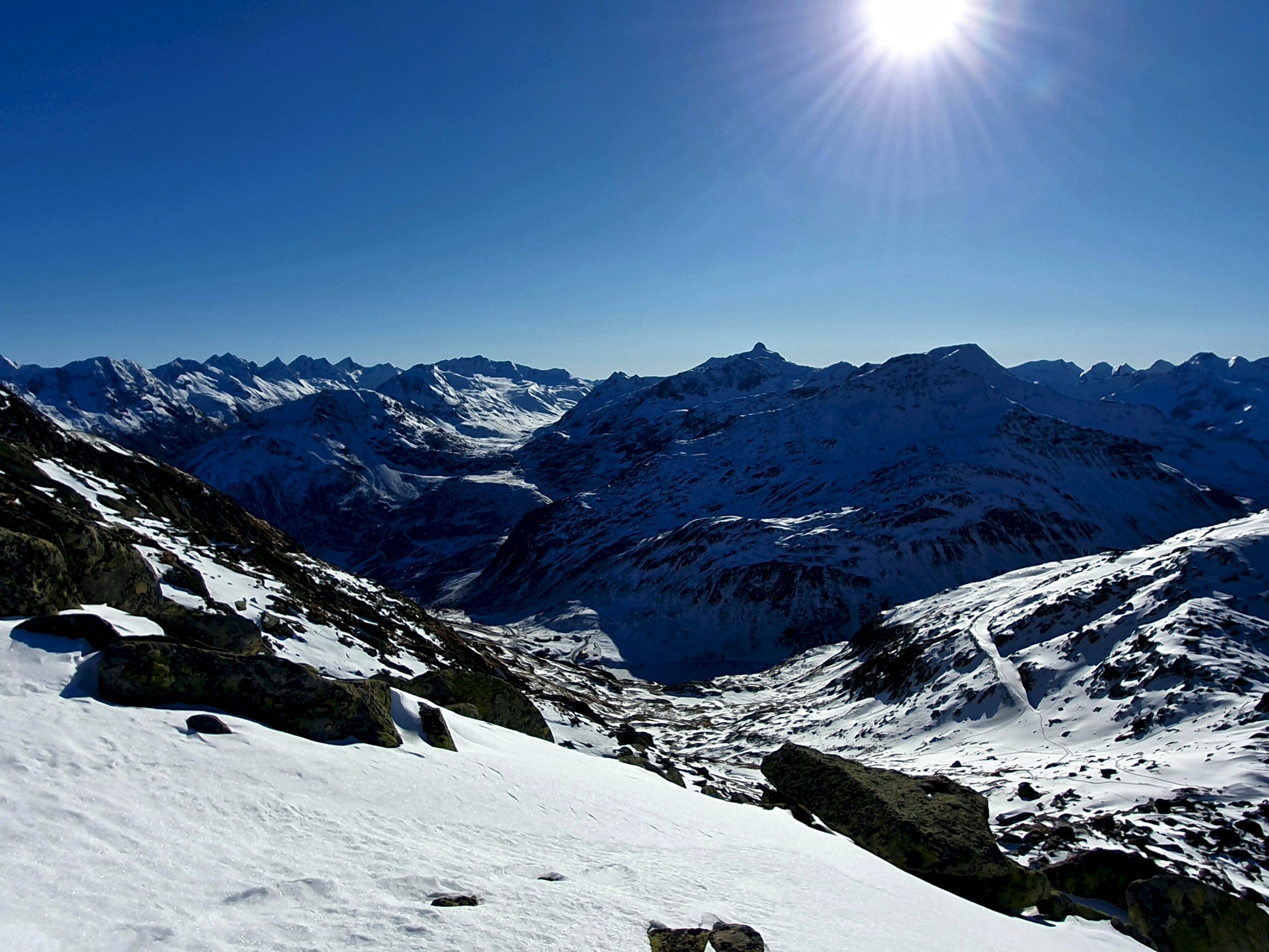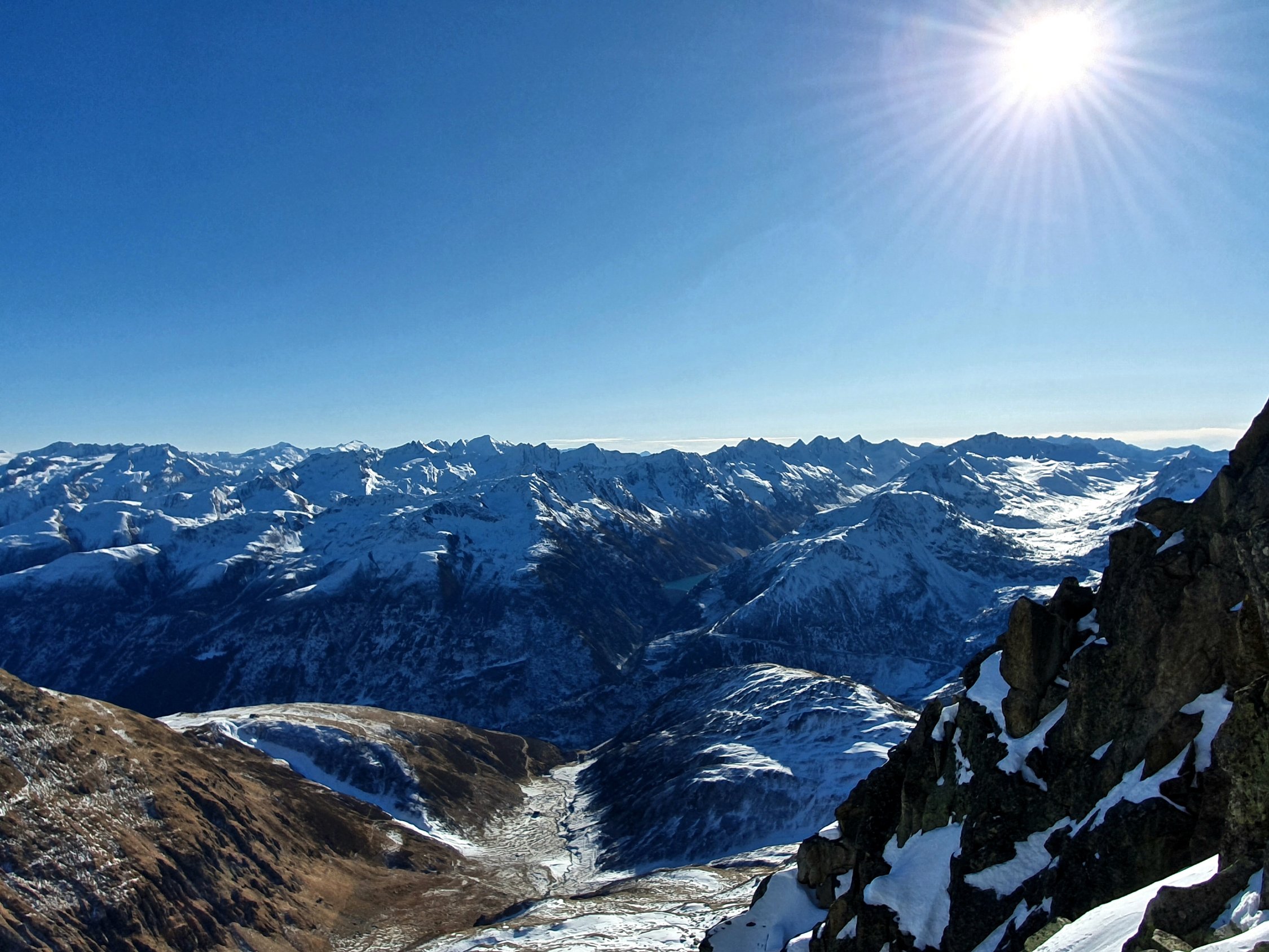 Ganztags relativ kalte (kälter als von Meteo gemeldete-) Temperaturen, da zügiger Biswind. Dafür grandiose Weitsicht und wolkenlos.