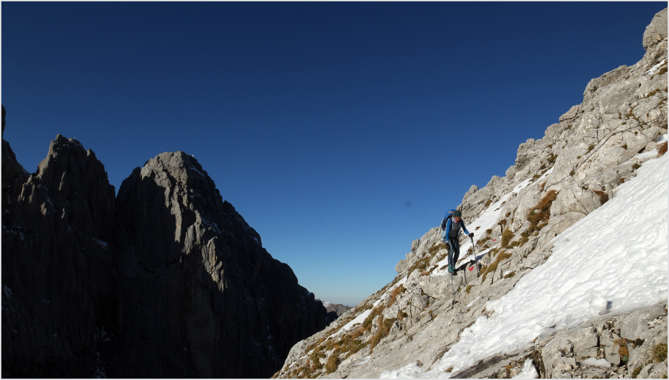 Bis zum Tor allerdings recht gute Verhältnisse, die wenigen Schneepassagen stören kaum.