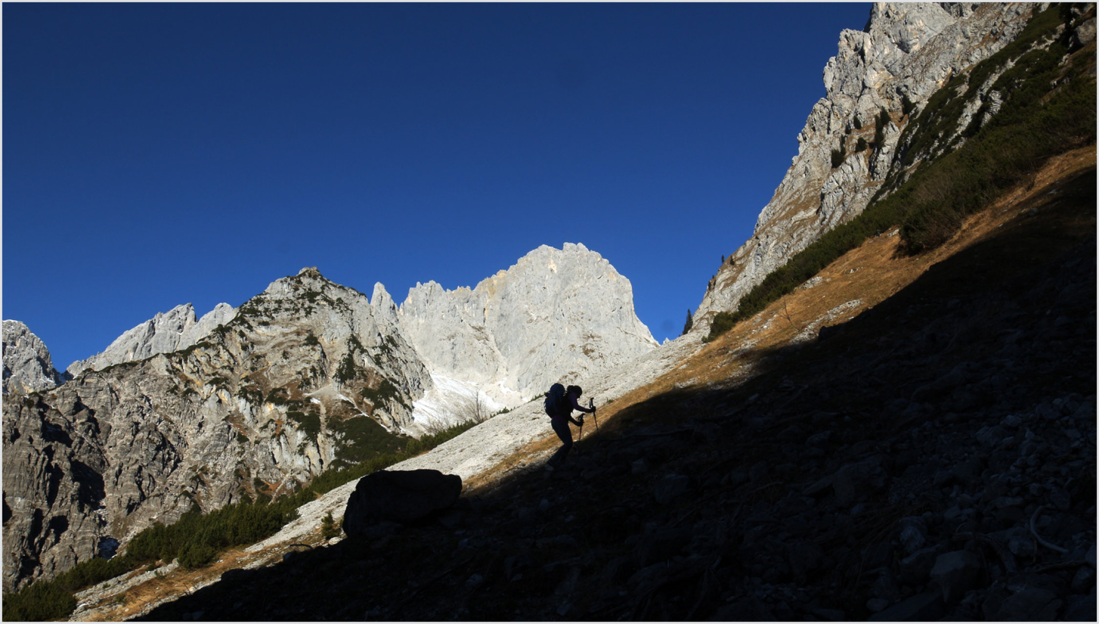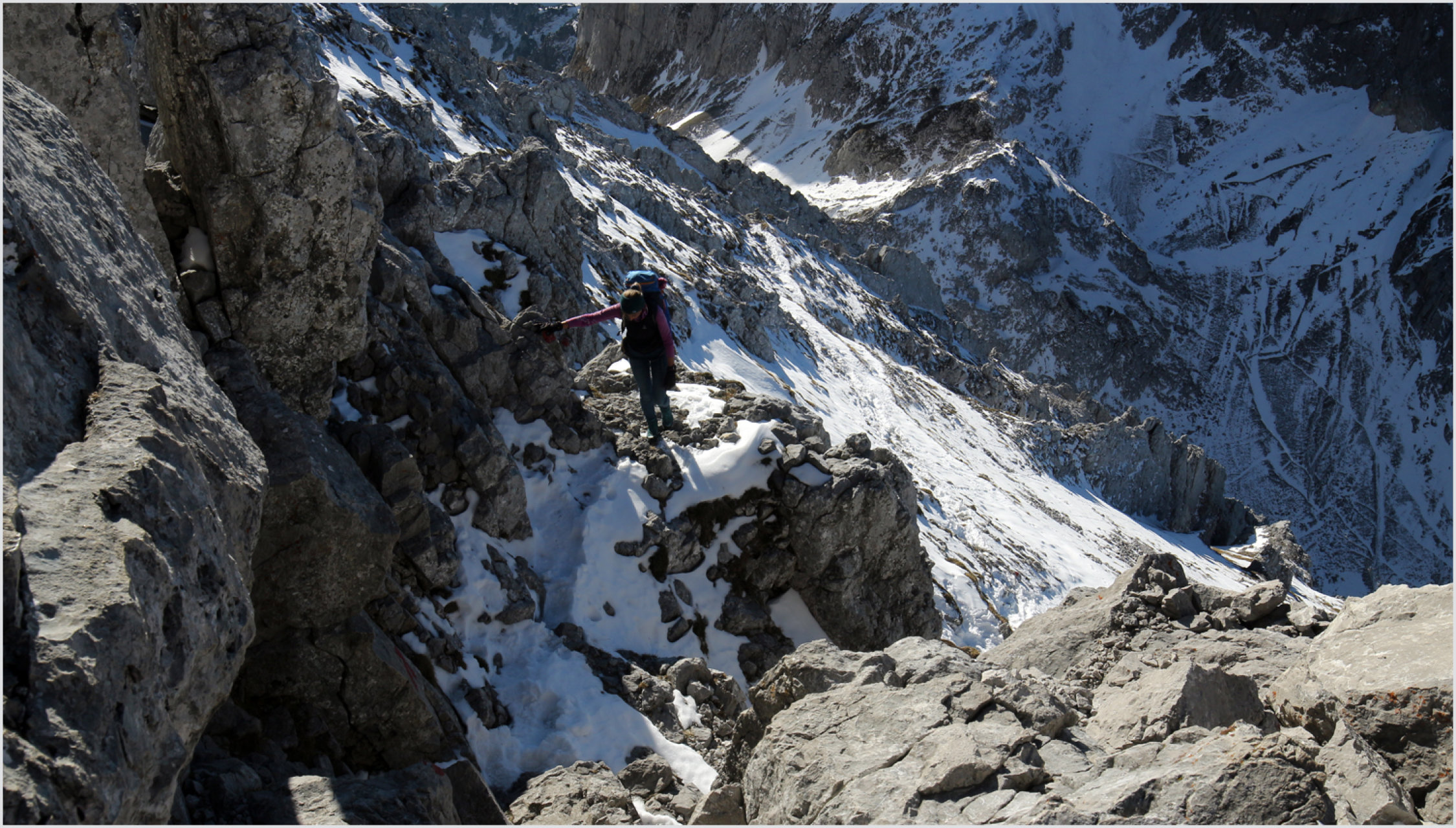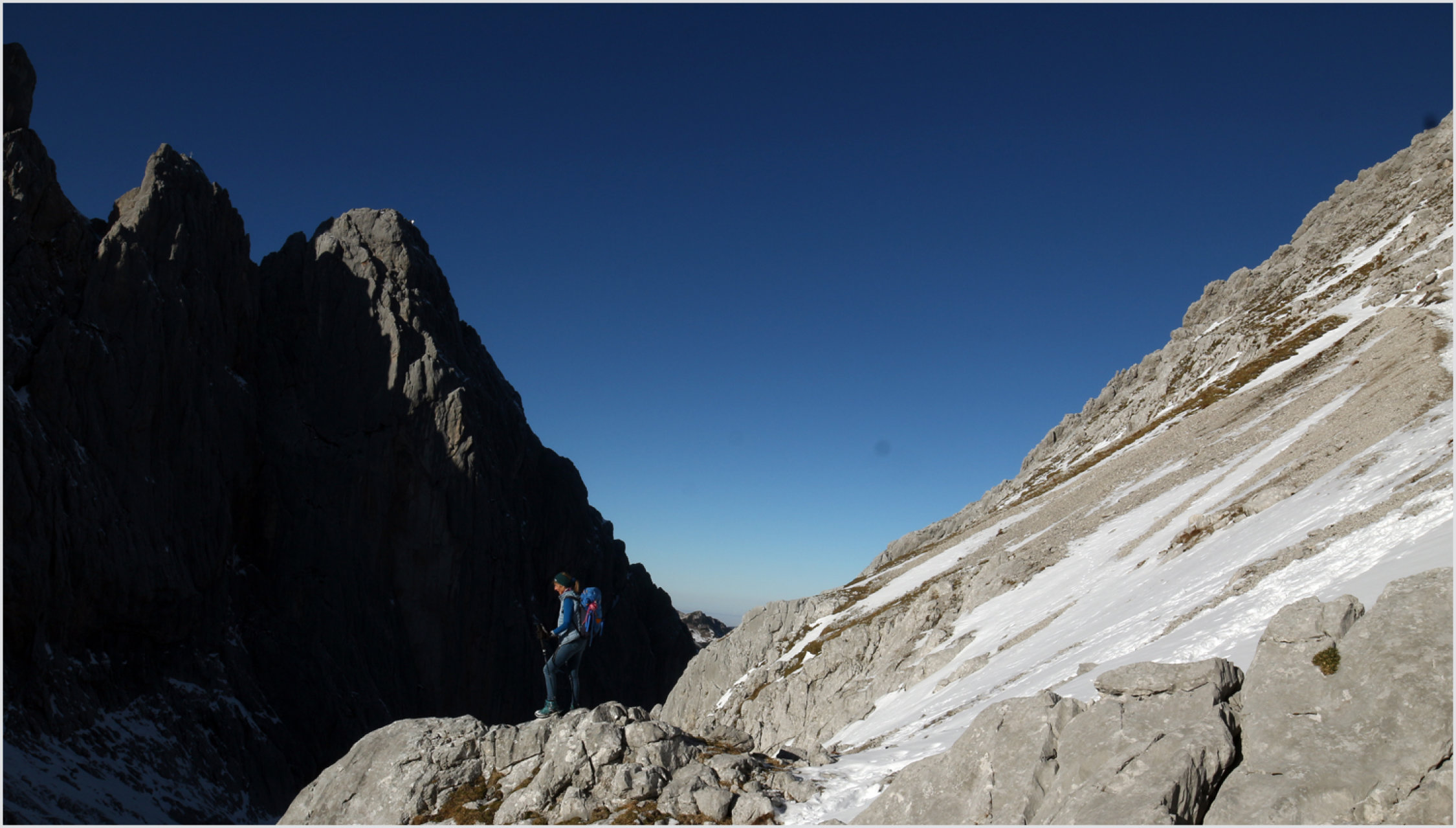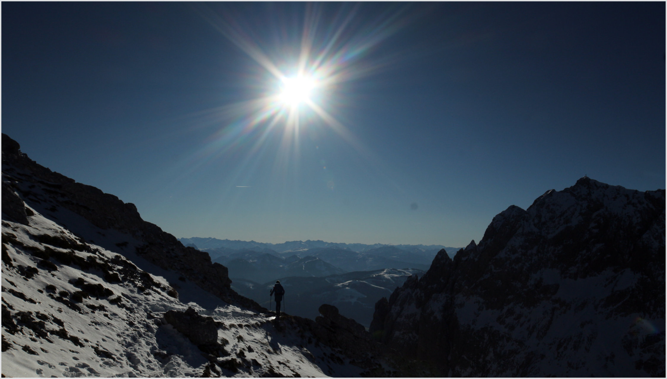 Die Verhältnisse sind an sich noch ganz gut.Allerdings muss man sich auf den stellenweise vereisten Wegen, vor allem oberhalb des Ellamuer Tores wohlfühlen. Es schaut nach weniger Schnee aus wie man dann vorfindet. Da die Sonne nur kurze Zeit dorthin scheint, sind manche Passagen pickelhart gefroren. Grödel können ggf. hilfreich sein.