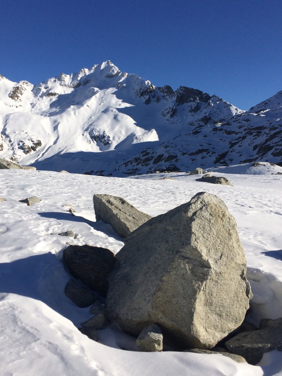 Die ersten 250m auf dem Säumerweg Richtung Rotondohütte sind zwar noch etwas knapp in Sachen Schnee.