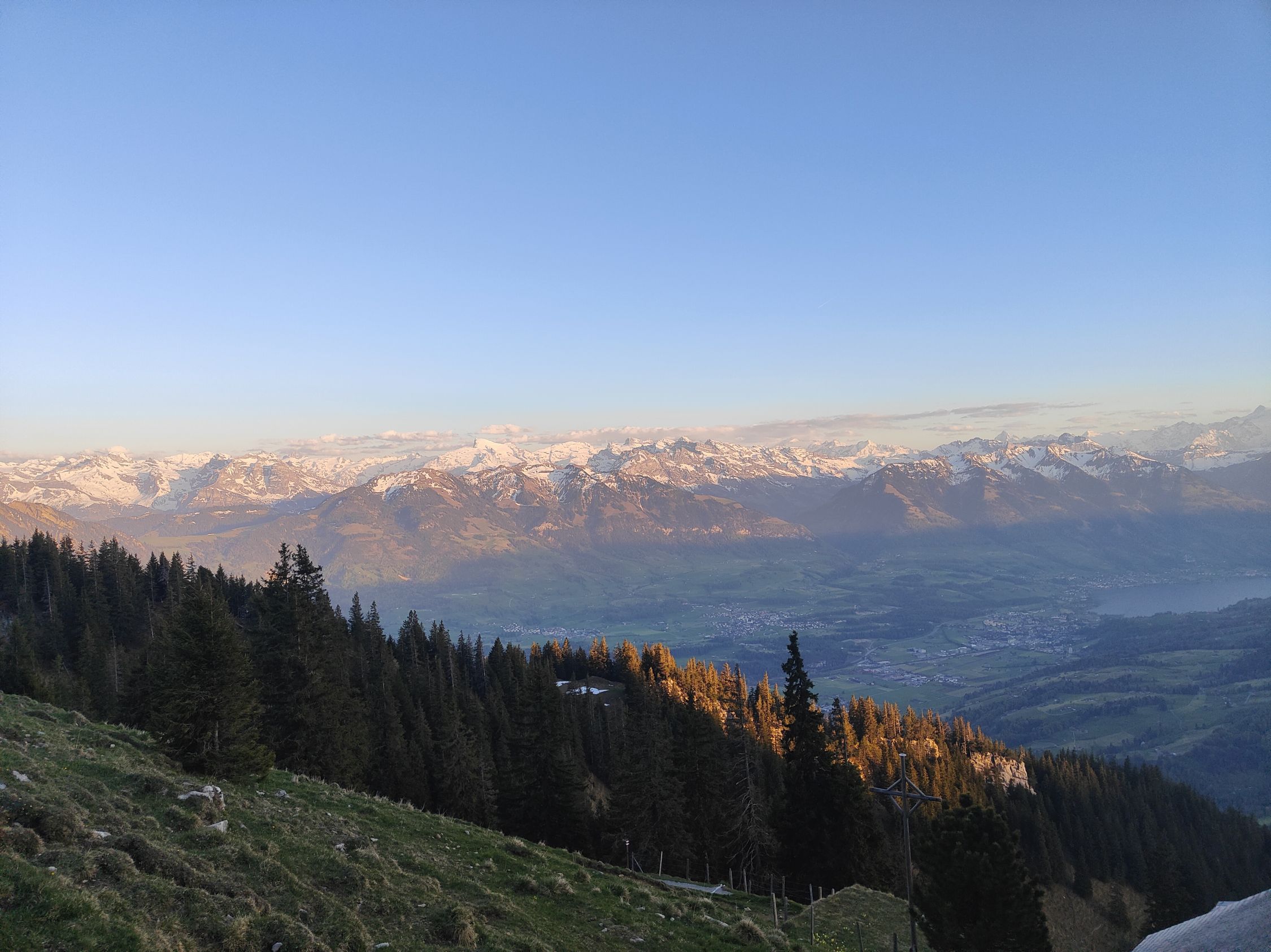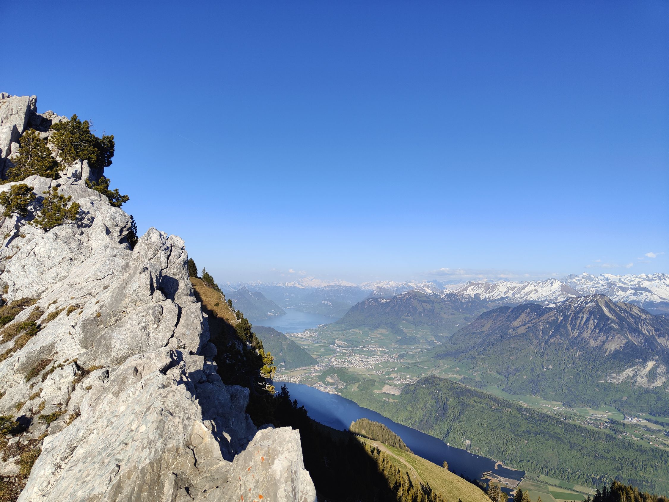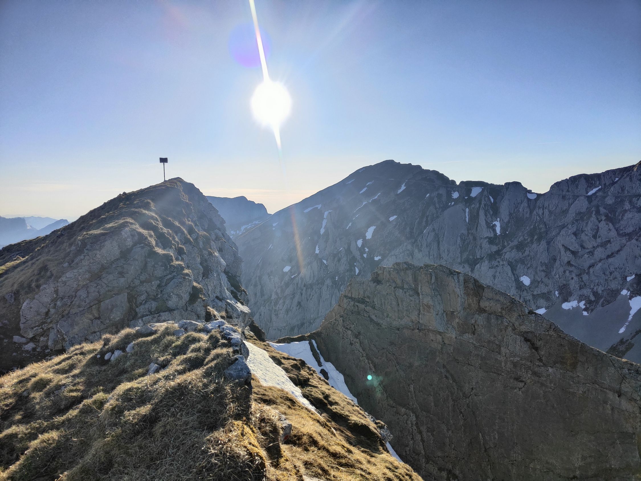 Trainingslauf am Brotmesser. Start um 15:00 in Alpnach Dorf, Zustieg ohne Schneekontakt bis auf den Grat. Heute Einstieg mal wieder über die rechte Variante, einfacher als links aber auch sehr schön. Grat selbst in der Abendsonne bei besten Bedingungen, nur etwas windig. Erst am Gipfel traf ich auf weitere Leute, ansonsten war ich alleine unterwegs. Nach Gipfelrast entschied ich mich, wieder nach Alpnach Dorf abzusteigen, wo ich um 21:24 den Zug erwischte. Immer wieder schön!