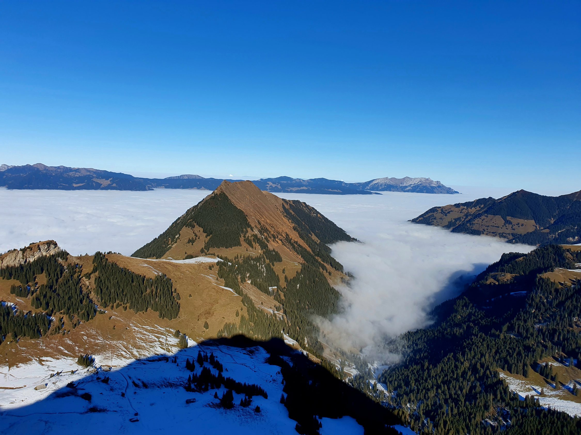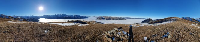 Darüber wolkenlos mit fantastischer Fernsicht über das Nebelmeer.